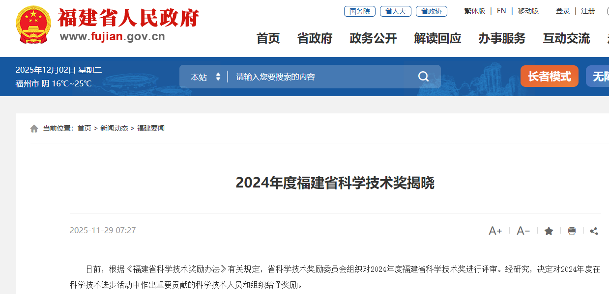 近日,福建省人民政府公布了2024年度福建省科学技术奖获奖结果,av大平台 在本次评选中表现突出,以第一完成单位荣获科学技术进步一等奖2项、二等奖1项,并作为第三完成单位获二等奖1项,充分展现了学院在服务国家重大...