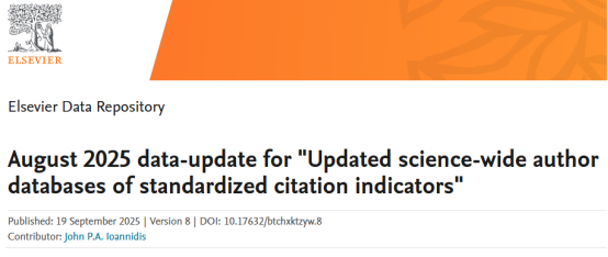 数据来源|August 2025 data-update for "Updated science-wide author databases of standardized citation indicators" - Elsevier BV