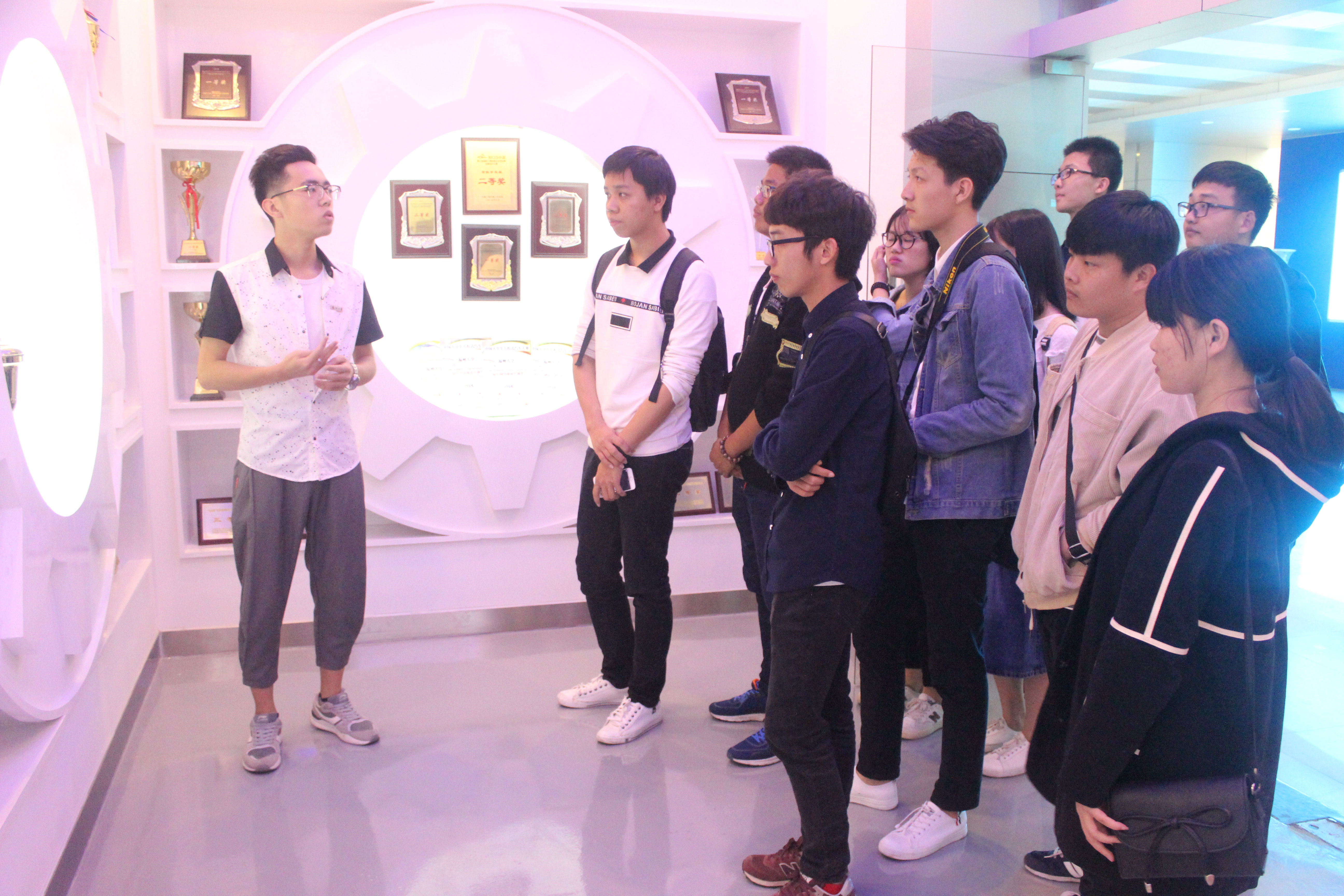 4月16日,福建省20余所高校易班工作站同学共100人来到我校,在av大平台 14级辅导员滕培秀老师的陪同下参观了av大平台 科技创新文化馆,易班工作站的同学们对学院近年来的情况及学生的科技创新成果进行了学习和了解,并且对于av大平台 学生的作品给予了充分的赞赏,同时表示在对av大平台 的参观后收获很大。