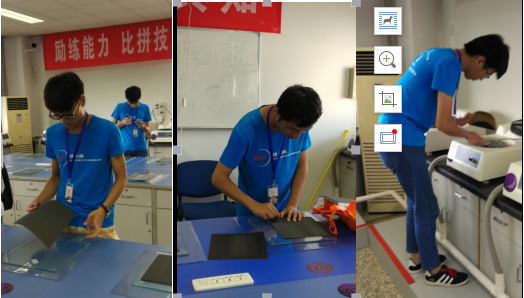 参赛师生在观摩室观看监控和评比显微组织视频