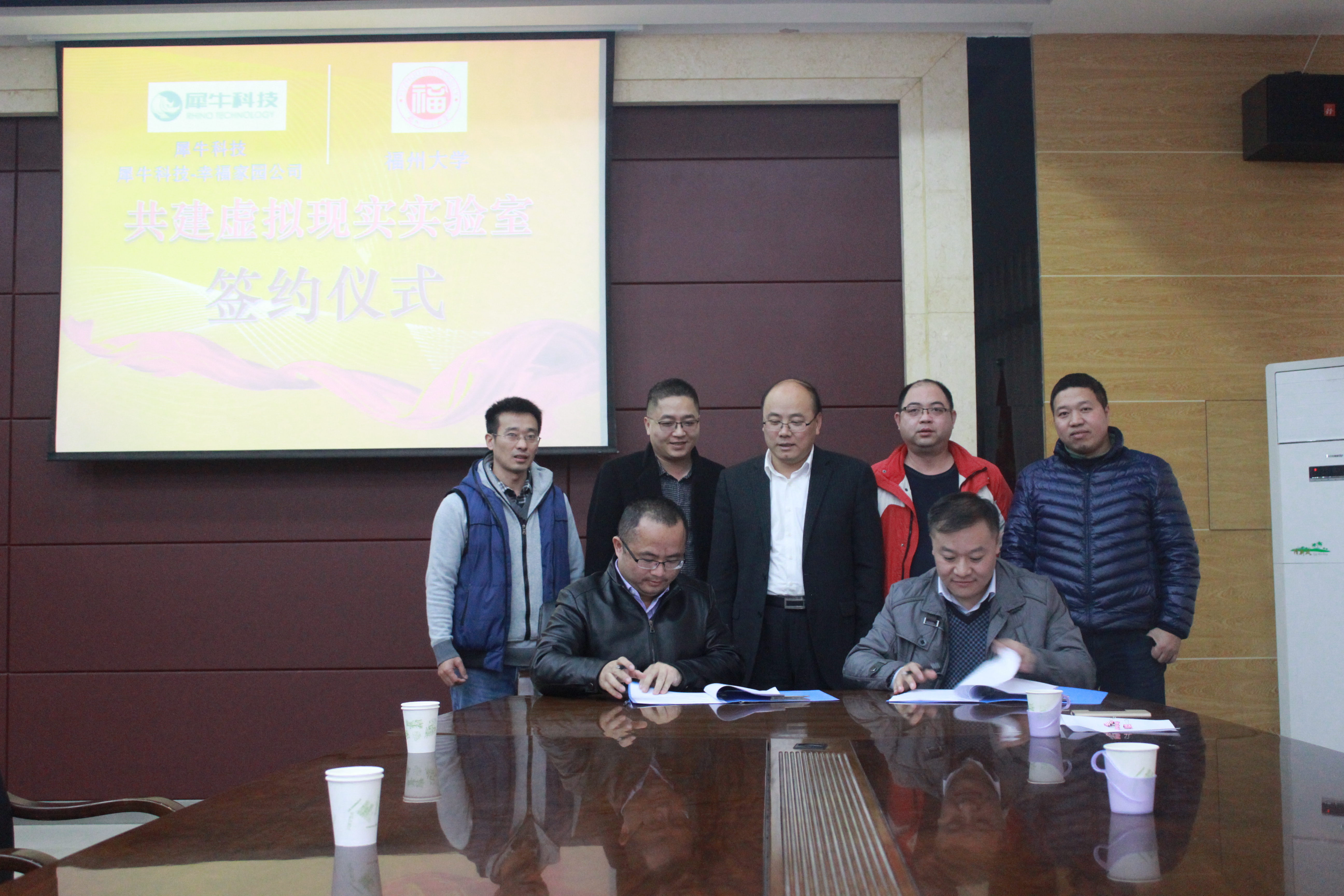 与北京犀牛数字互动科技有限公司、福建幸福家园投资管理有限公司的关于共建虚拟现实实验室签约仪式于机械楼南401会议室举行。出席本次签约仪式的有北京犀牛数字互动科技有限公司总经理刘向群、福建幸福家园投资管理有限公司董事长李建新、av大平台