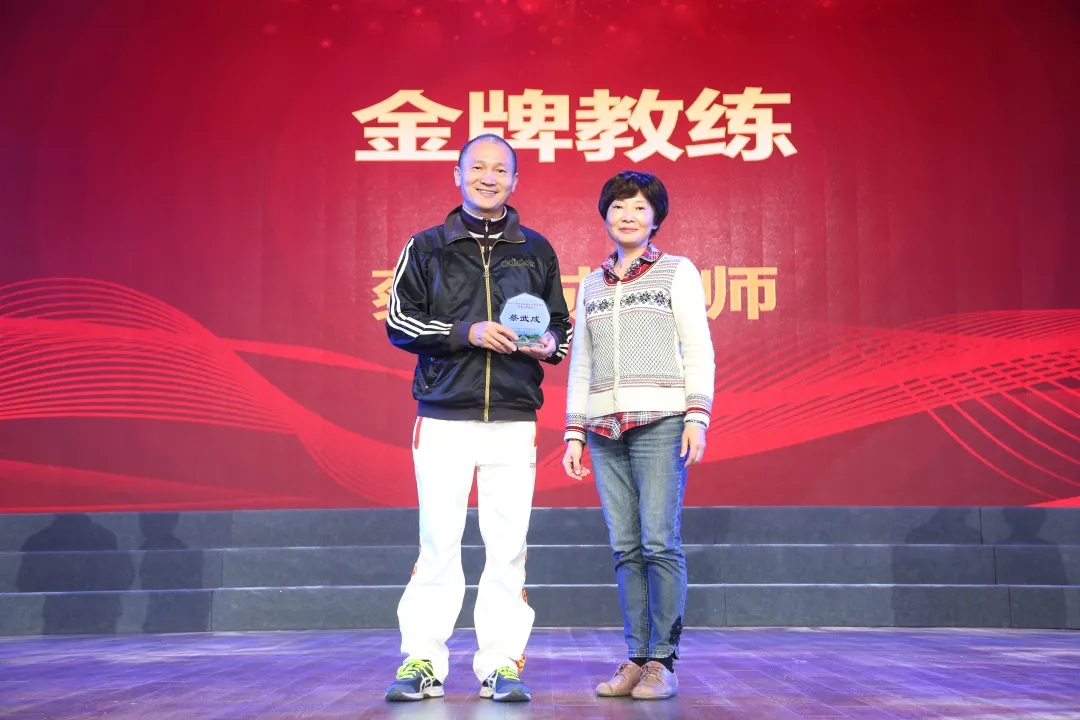 倪朝霞书记为蔡武成老师颁发“金牌教练”奖