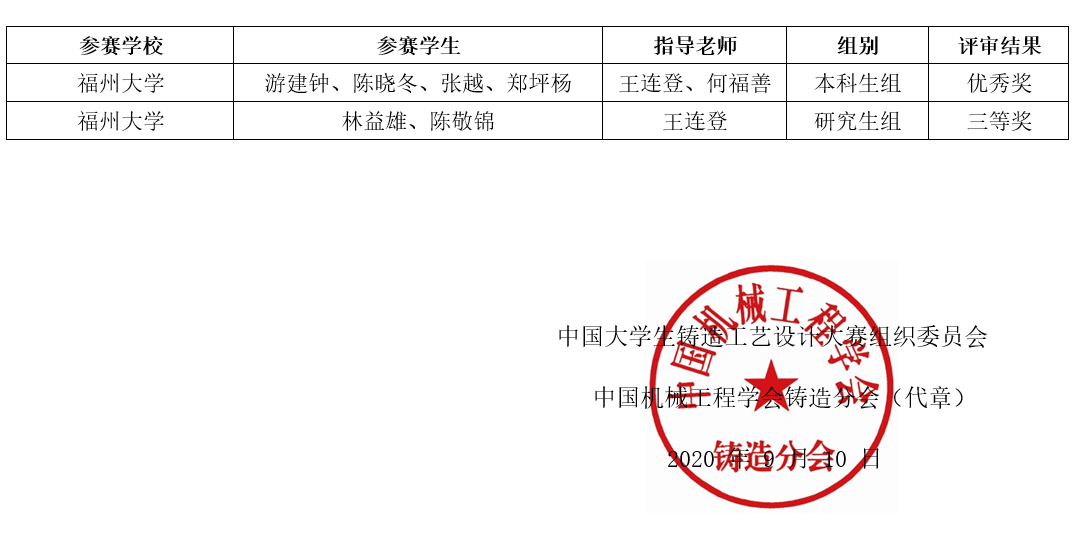 材料成型系积极组织学生参赛,提交了3组本科生参赛作品以及1组研究生参赛作品,经过激烈角逐,由王连登老师指导的研究生组斩获三等奖,王连登老师和何福善老师指导的本科生组斩获优秀奖。