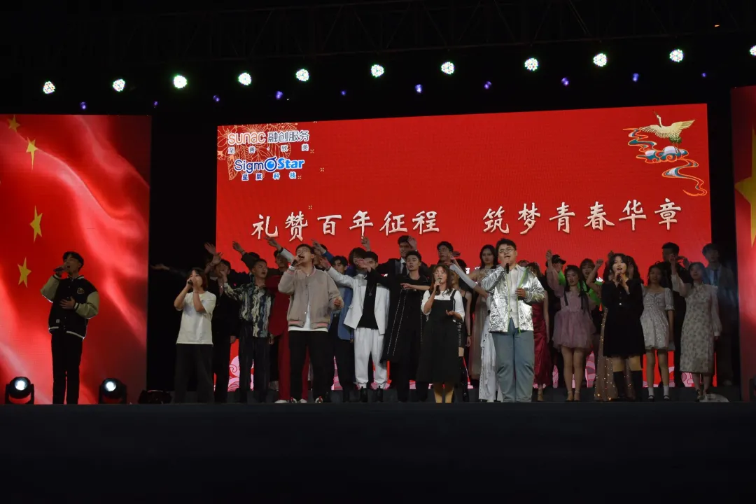 、土木工程学院、物理与信息工程学院联合举办的“礼赞百年征程,筑梦青春华章”主题迎新晚会在铜盘校区田径场拉开帷幕,这场持续了两个多小时的视听盛宴展现了各院学子的青春风采,异彩纷呈,令人回味无穷。特邀出席本次晚会的有物信学院党委书记张红、土木学院副院长张挺、机械学院党委副书记林文麟、物信学院党委副书记郑志刚,还有各个学院的团委书记,辅导员和新生班主任和班导师们。