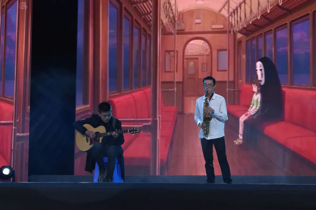 随后,机械学院的两位同学用吉他和萨克斯为我们带来《千与千寻》中脍炙人口的主题曲《Always with me》,当吉他声充盈会场,当萨克斯响彻心房,便无需多言,只要用心欣赏。时光在此刻或快或慢,都随着悠扬的乐曲深深融入到旋律之中。
