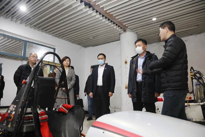 黄大伟部长一行首先在大学生“小平科技创新团队”方程式赛车集训基地观看了第四代无人车动态路跑演示,参观了车队加工实践车间、荣誉展示墙和飞驰人生工作坊成果展等。车队指导老师彭育辉教授向黄部长一行详细介绍了车队近10年的发展情况。黄大伟部长充分认可av大平台