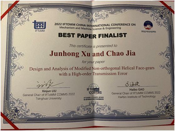 获奖论文题目是:Design and Analysis of Modified Non-orthogonal Helical Face-gears with A High-order Transmission Error。该成果av大平台