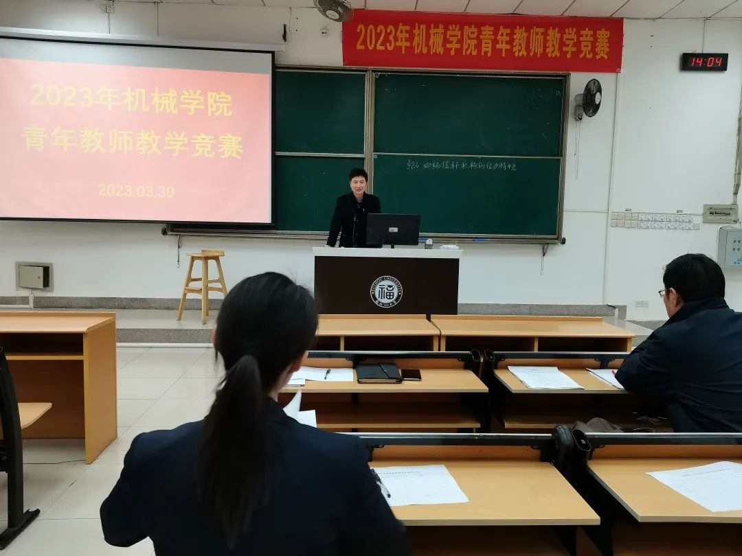 2023年3月30日下午,机械学院青年教师教学竞赛在东教3-107举办。本次竞赛邀请院党委叶青副书记(主持工作)出席,并邀请了校督导组陈硕教授、学院副院长张俊教授、学院工会主席陈爱华副教授、梁红艳副教授和陈晖副教授担任评委。竞赛由学院工会青工委员郑荣业主持,并组织新入职教师到场观摩。