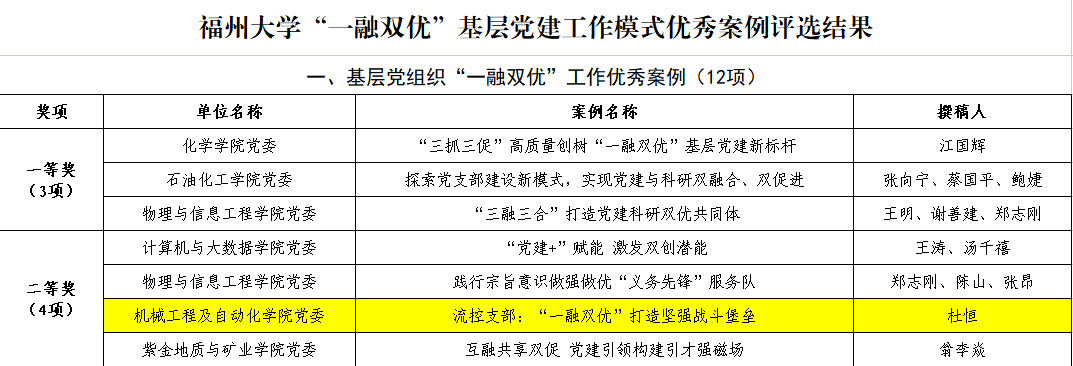 流体动力与智能控制福建省重点实验室党支部的《流体支部:“一融双优”打造坚强战斗堡垒》荣获二等奖。