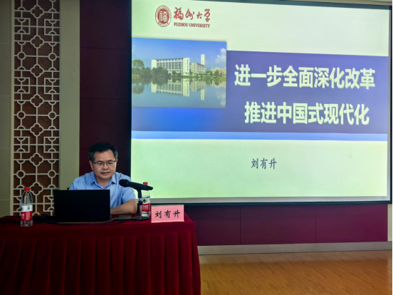 9月5日下午,机械学院党委组织召开学习贯彻党的二十届三中全会精神专题培训,省直机关工委讲师团特聘教授、我校马克思主义学院副院长刘有升教授应邀主讲《进一步全面深化改革 推进中国式现代化》专题报告。报告会由学院党委书记叶青同志主持,全院在职教师党员和退休教师党员代表参加报告会。