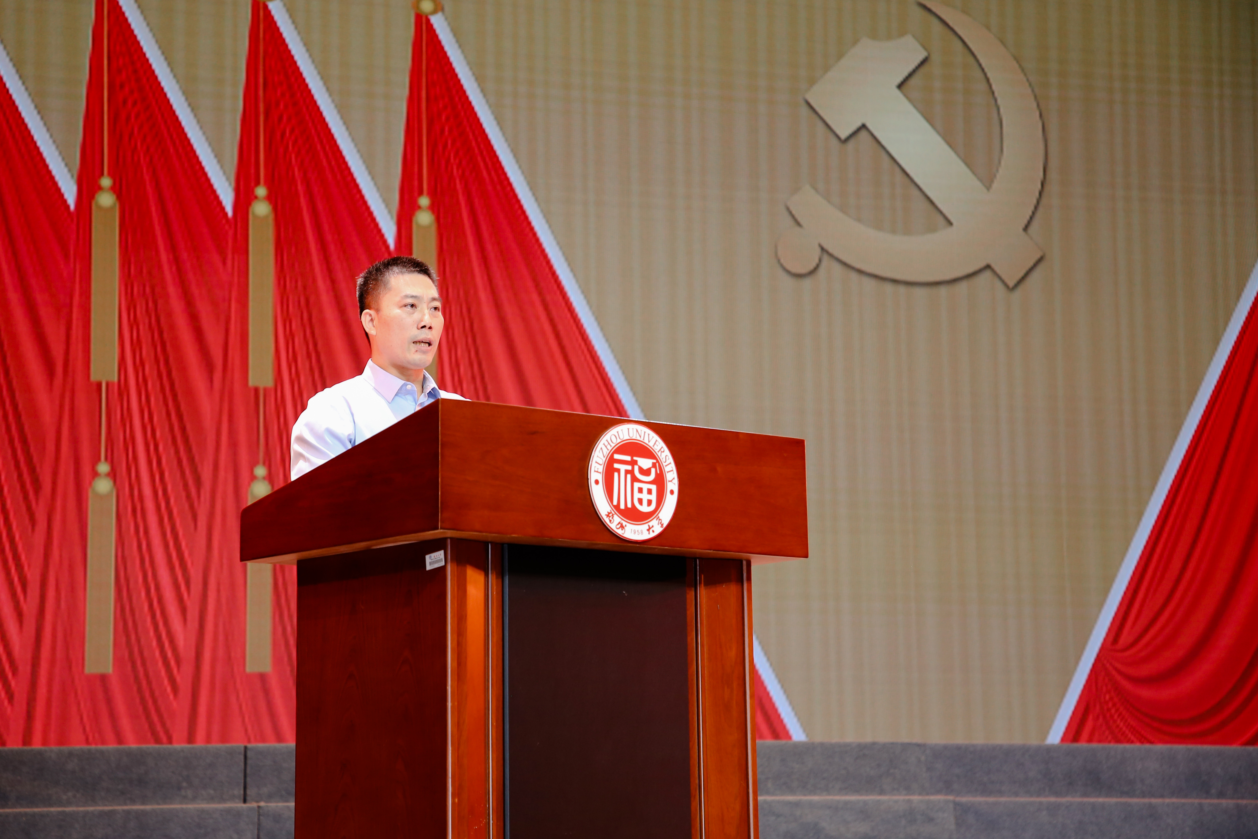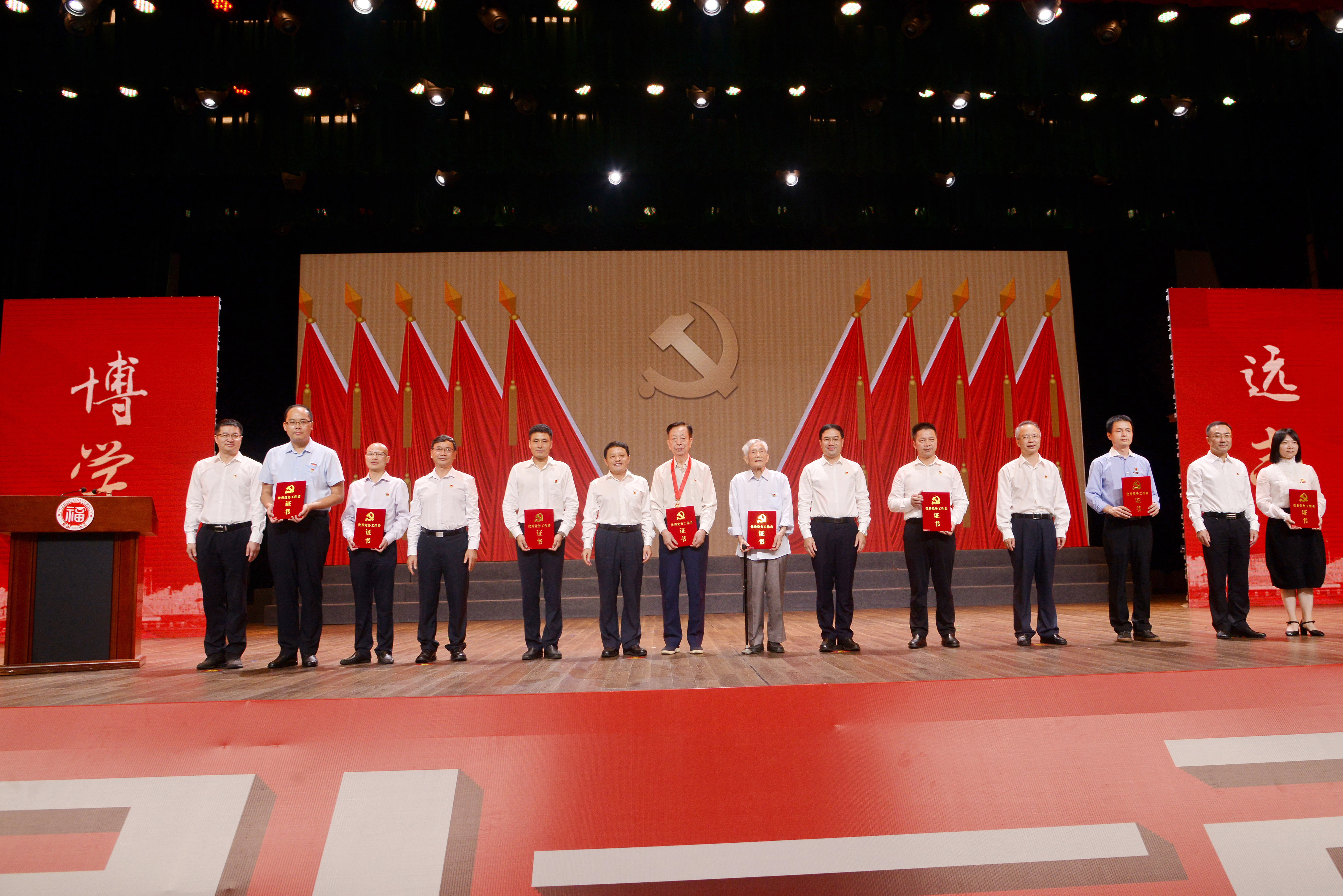 钟舜聪院长作为优秀共产党员代表发言。他首先感谢党组织的教育和培养,向获得“光荣在党五十年”纪念章的老一辈优秀党员致敬!他从初心使命、师德师风、开拓创新等方面分享了自己从海归博士到人民教师、从教学科研一线到双带头人的经历和取得的阶段性成绩。他表示,自己将珍惜荣誉,坚守初心使命,赓续红色血脉,传承福大“三种精神”,为学校“双一流”建设添砖加瓦,为光荣的党旗增光添彩!