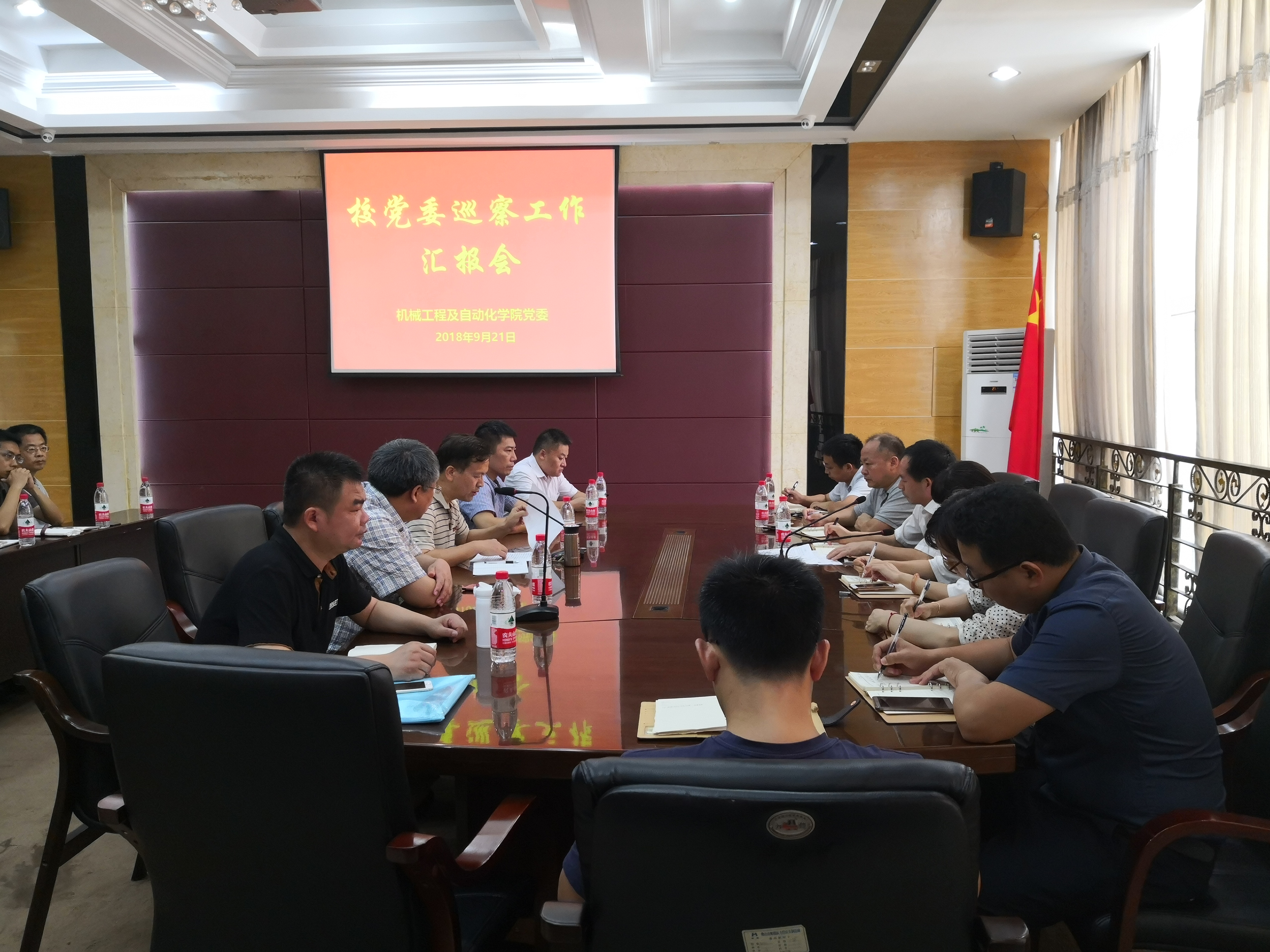 9月21日上午,av大平台 在机械楼南401会议室召开巡察工作情况汇报会。校巡察二组李文涛组长主持会议,院党委书记陈为旭汇报av大平台 三年来的工作。av大平台 党委巡察二组全体成员、院中层以上干部、各教工党支部书记、学生辅导员近30人参加会议。
