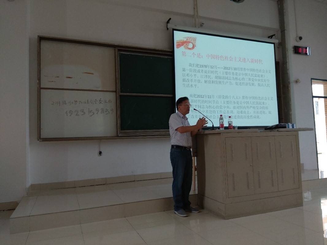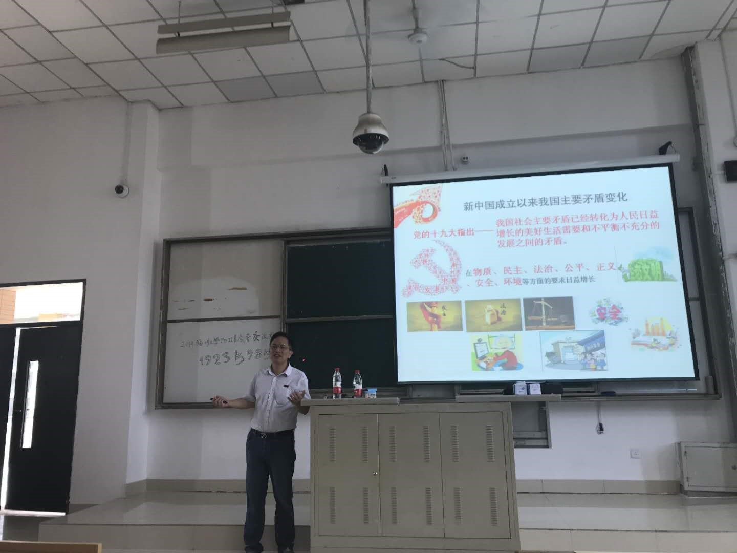 党委书记陈为旭在教学楼东3-100为2018级全体研究生做了我国社会主要矛盾的变化规律的讲座。