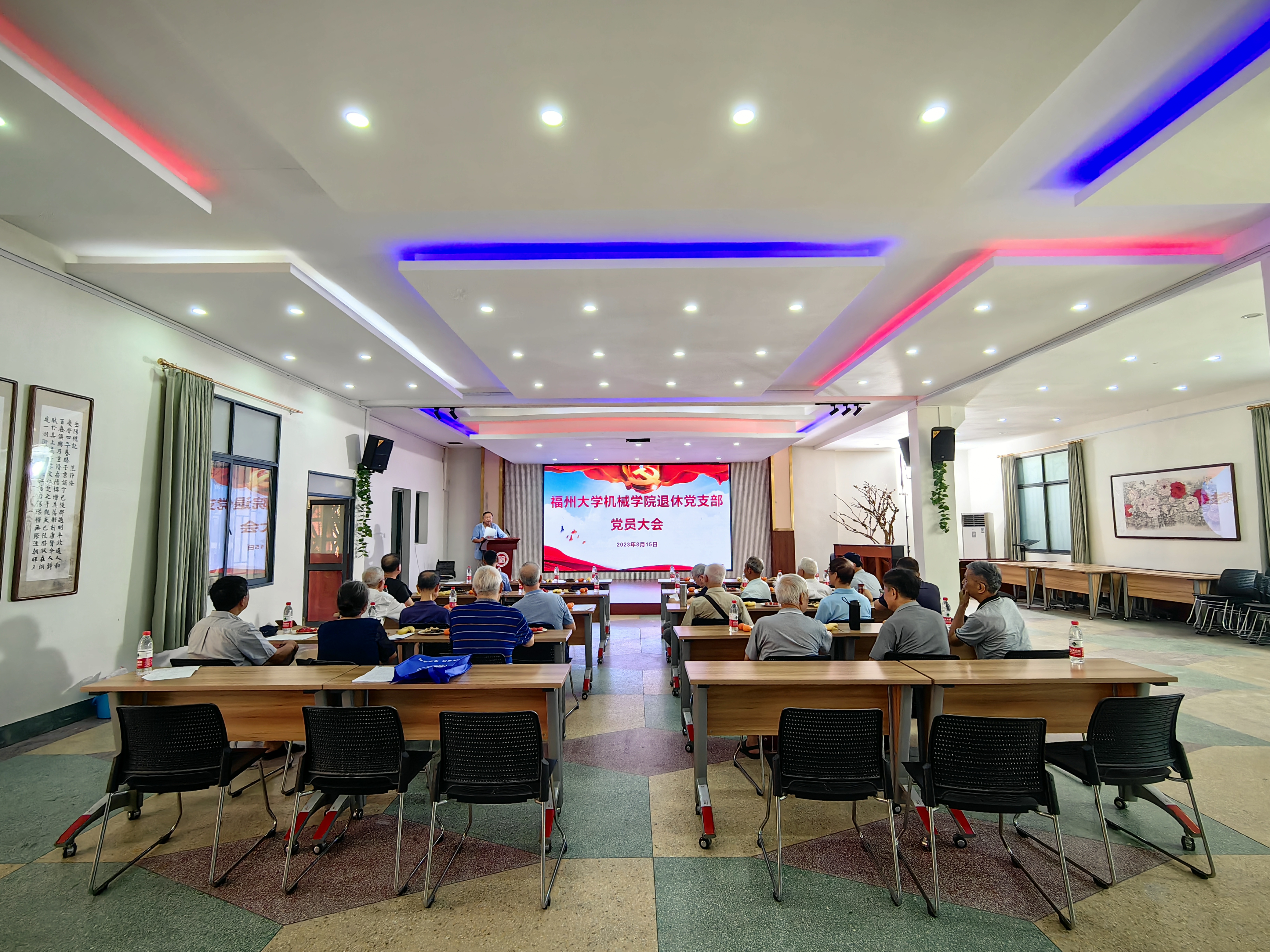 8月15日,机械学院退休党支部在校离退休教职工活动中心会议室召开党员大会,叶青书记、杜恒副院长和退休党支部21名党员同志参加会议。党员大会由退休党支部书记黄利光同志主持。
