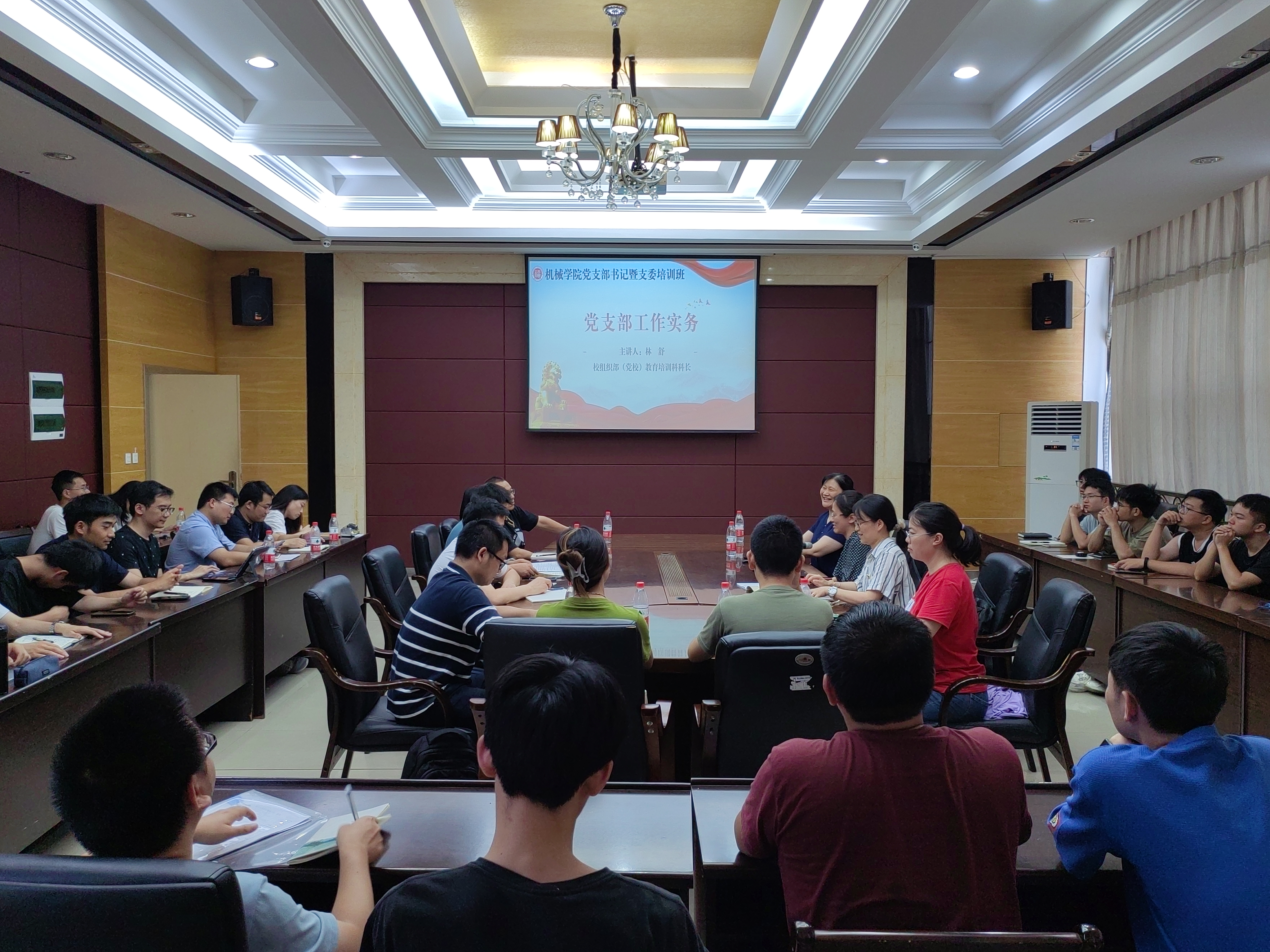 举办党支部书记暨支委培训班,培训班邀请到校组织部(党校)教育培训科科长林舒老师作《党支部工作实务》专题培训。学院党委书记叶青、副书记孙鋆出席培训会,师生支部书记、支委参加本次培训会,会议由学院党委组织员夏丽君主持。