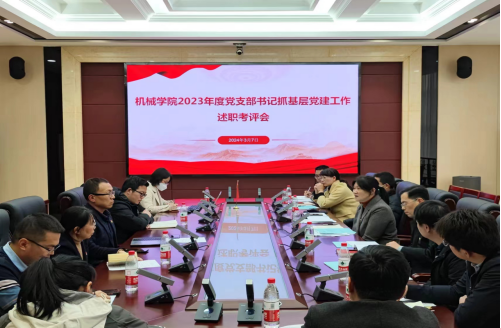 3月7日下午,机械学院举行2023年度党支部书记抓基层党建述职考评会。学院党委书记叶青,党委副书记兼纪委书记孙鋆,学院党委委员杜恒、陈剑雄、任志英,全体师生党支部书记参加会议,17个师生党支部参加现场PPT述职,会议由学院正科级组织员夏丽君主持。