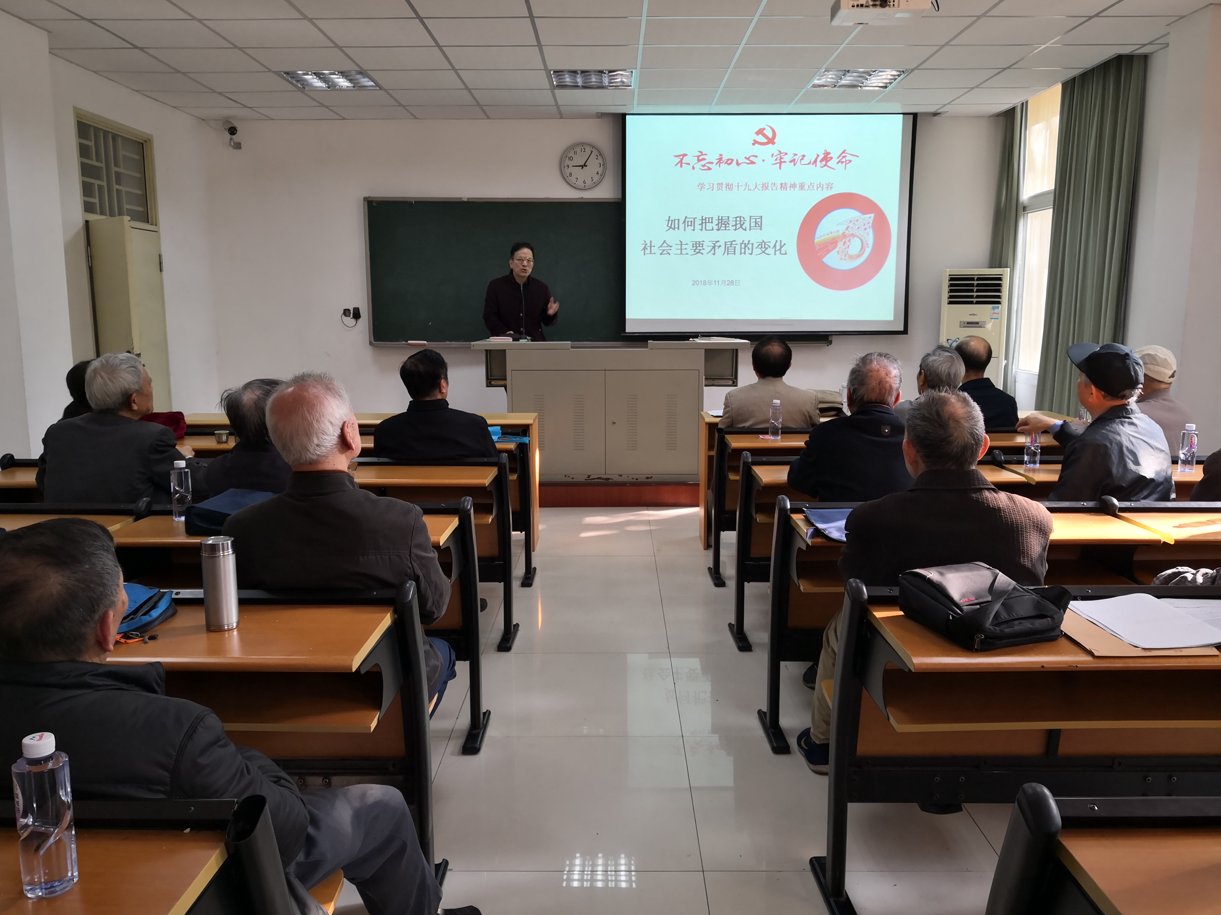 11月29日上午,院党委陈为旭书记在怡山校区化工楼201多媒体教室为退休支部党员作题为《如何把握我国社会主要矛盾的变化》的党课,退休支部30名党员参加了学习。