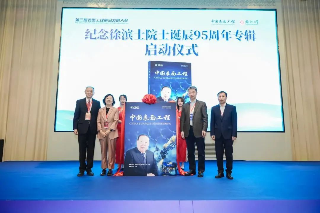 开幕式上举行了纪念徐滨士院士诞辰95周年专辑启动仪式,谭俊研究员介绍了专辑的筹备情况,副秘书长陈超志教授级高工、中国机械工程学会兼职副秘书长王淑芹编审,主编邵天敏教授,《中国表面工程》副主编谭俊研究员共同为专辑启动揭幕。