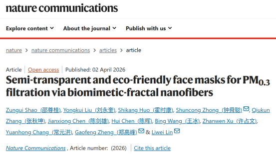 复杂的环境和气候变化使得超细颗粒物的威胁与日俱增,口罩已成为不可或缺的个人防护装备。目前,主流使用的N95口罩主要由熔喷聚丙烯纤维制成,依靠静电吸附效应来提高过滤效率。然而,其在潮湿环境中极易因电荷耗散而失效,且使用后难以降解,加剧环境负担。尽管通过静电纺丝技术制备可降解口罩被视为有前景的解决方案,但如何降低材料用量、提升佩戴舒适度和透明度,同时确保过滤性能超越当前口罩,仍是当前的重大挑战。