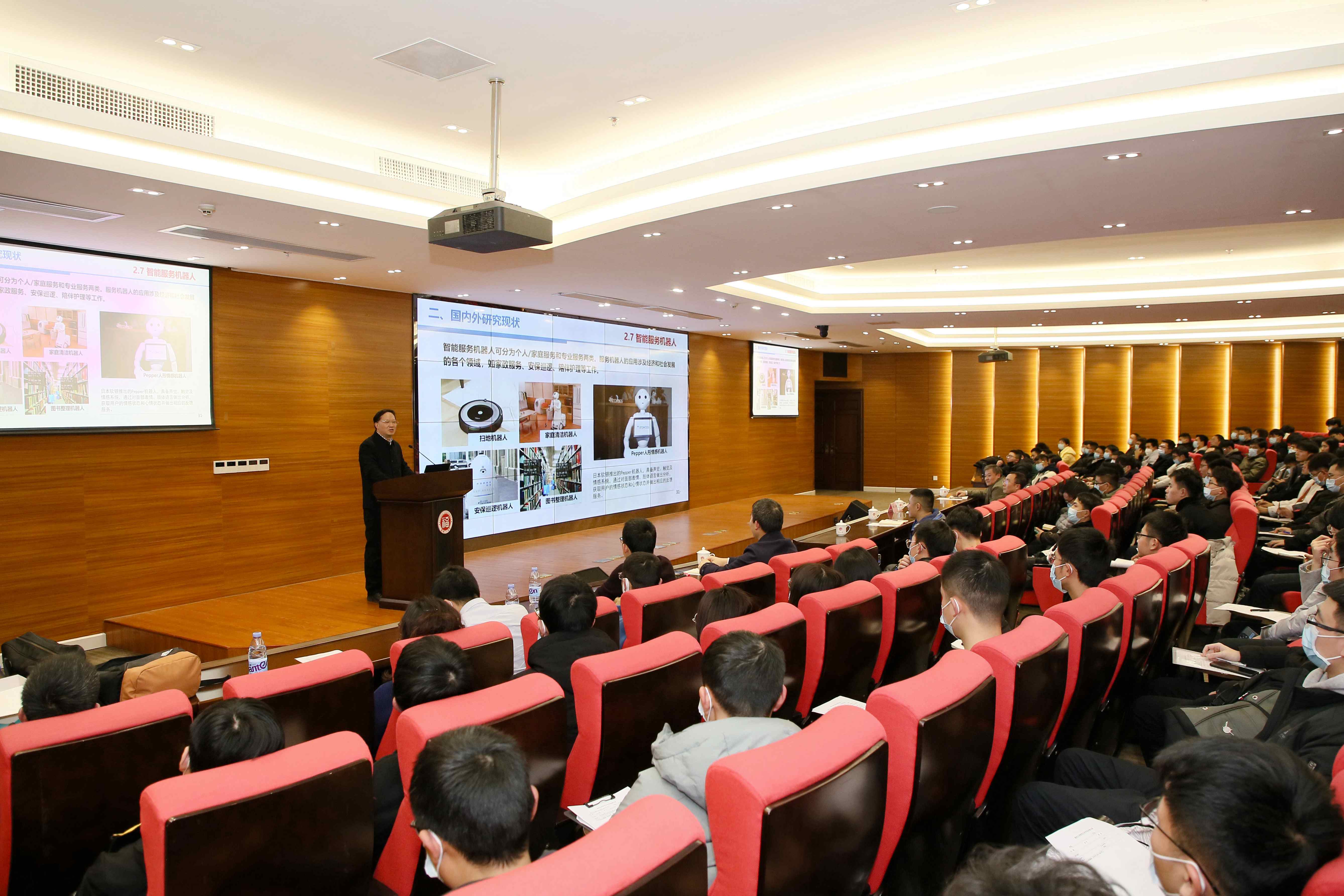 讲座现场,王耀南院士介绍了机器人的发展历程及智能机器人对技术和产业发展的重要意义,通过介绍国内外研究现状,为老师和同学们展示了当前机器人领域的前沿研究成果,并结合实际项目从感知、决策、执行三个层面切入对智能机器人关键技术及应用做了详尽的介绍。到场师生认真聆听了王耀南院士的报告,讲座结束后,多位老师和同学与王耀南院士进行了深入交流。王耀南院士的讲座立足长远,拓宽了广大师生的思路与眼界,让现场师生受益匪浅。