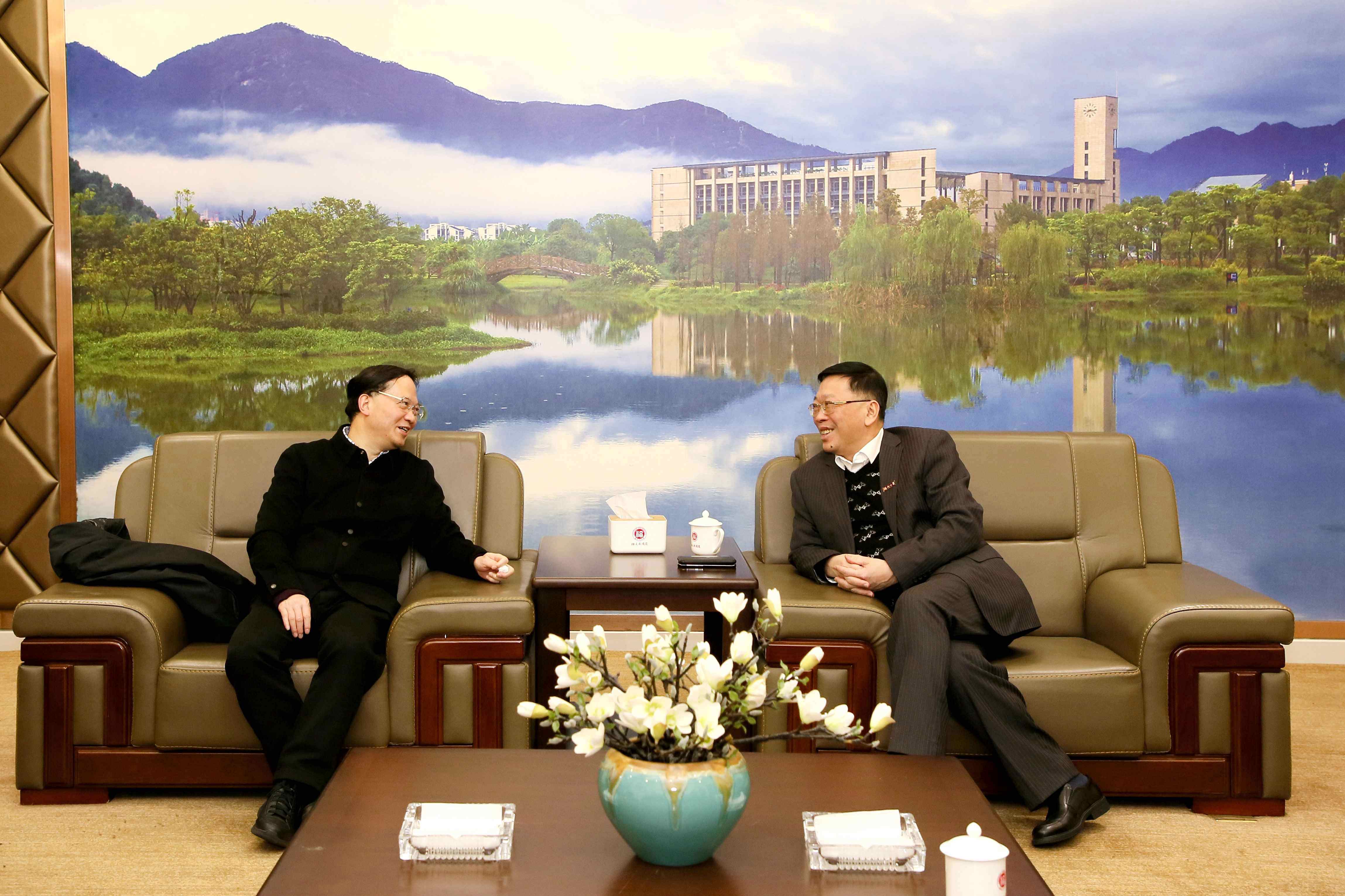 师生作《智能机器人技术及其发展趋势》专题讲座。讲座前,校党委陈国龙书记会见了王耀南院士,校党委常委林键副校长、校人事处处长兼机械学院院长钟舜聪、机械学院党委叶青副书记(主持工作)、何炳蔚副院长等校、院领导陪同会见。
