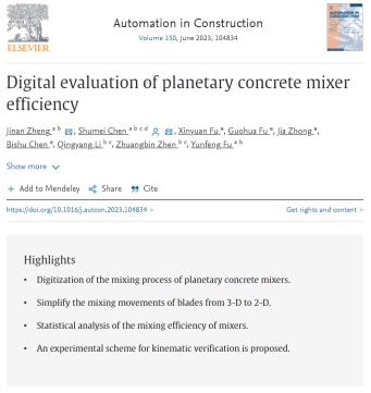 3月24日,我院郑基楠(2019级博士)为第一作者、陈淑梅教授为通讯作者、付云峰(2019级硕士)等在国际著名期刊《Automation in Construction》(IF: 10.517,中科院一区 Top 期刊)线上发表了最新研究成果——“行星式混凝土搅拌机效率的数字化分析方法”《Digital evaluation of planetary concrete mixer efficiency》。