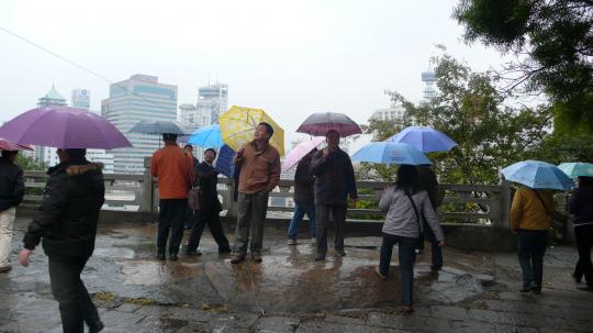 十二月末的榕城,虽然已是深冬,但仍然感觉不到严寒。12月27日下午,机械学院工会组织全院教师在福州于山举行“登山活动,近60位教职工参加了本次活动。虽然下着细雨,但他们热情不减,撑起雨伞,穿行于郁郁葱葱的林木间,健步在蜿蜒的山路上。欣赏沿途美景。最后,他们登上于山顶九日台,眺望烟雨朦胧的五一广场,感慨省会福州的巨大变化。