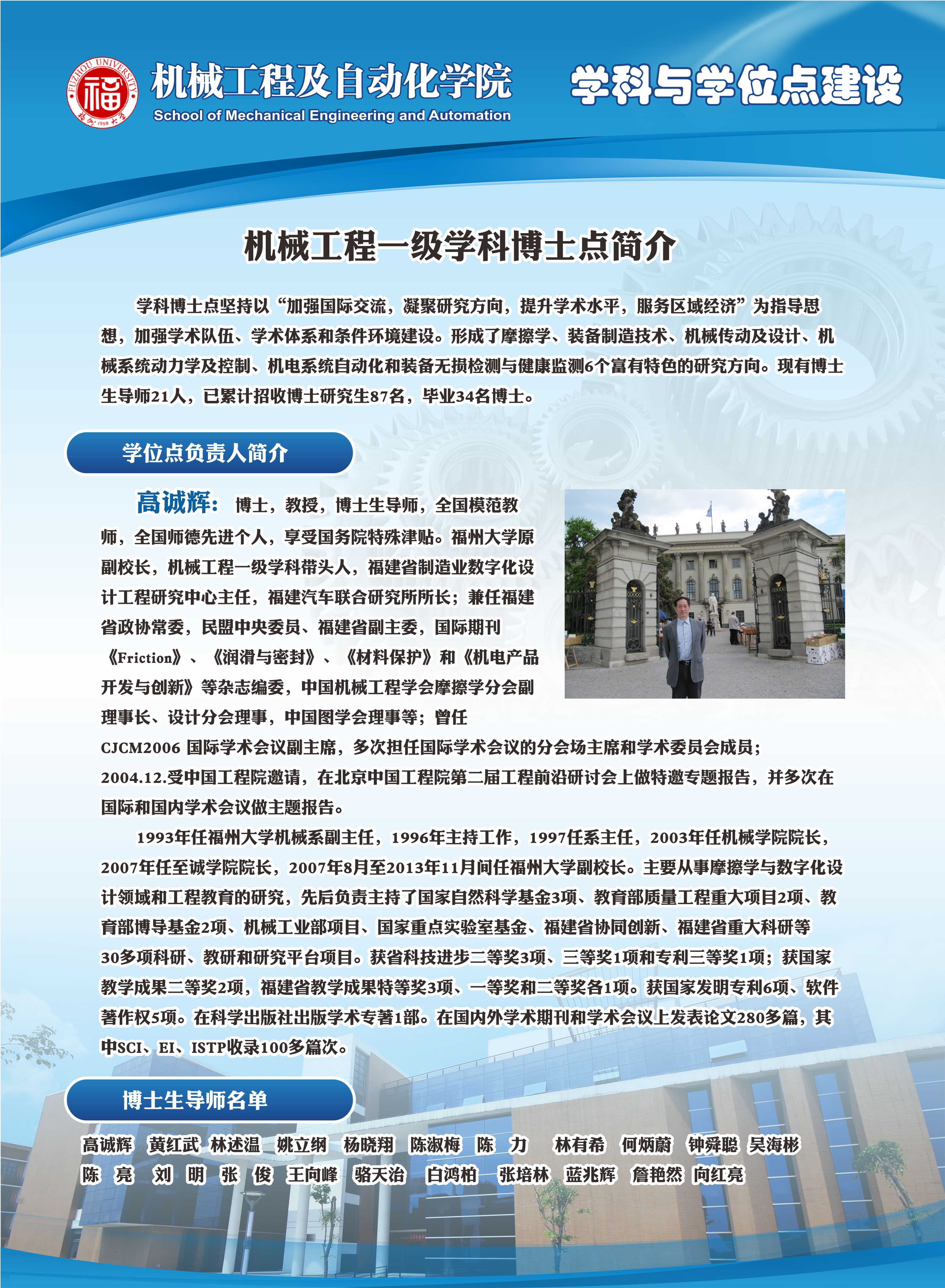 机械工程一级学科博士点简介