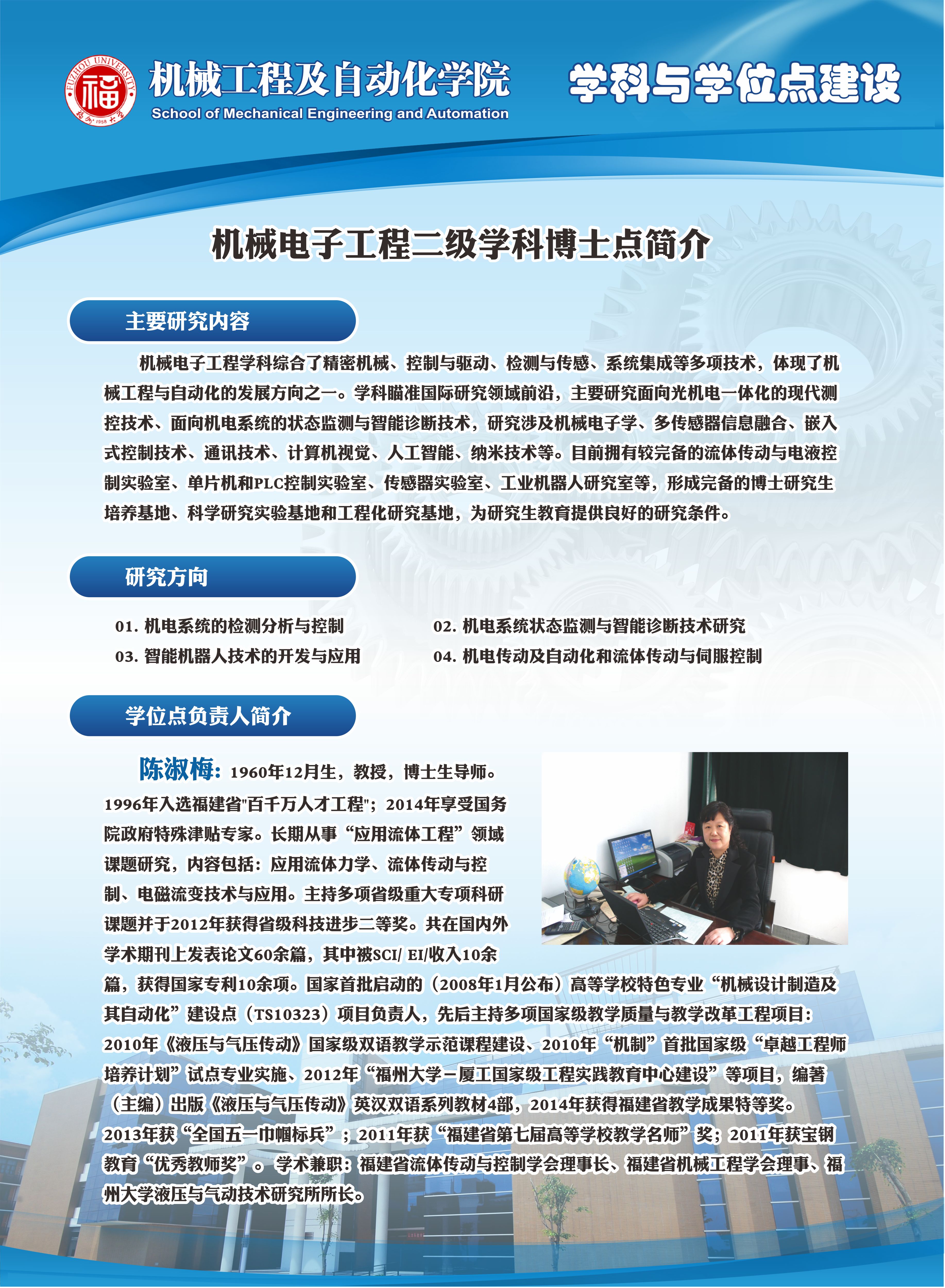机械电子工程二级学科博士点简介