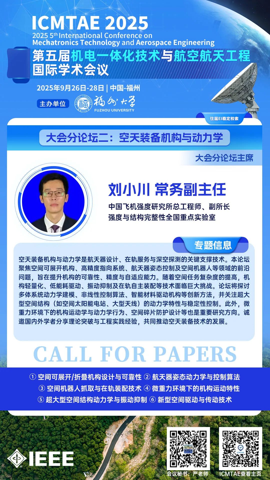ICMTAE征稿邀请丨分论坛二:空天装备机构与动力学