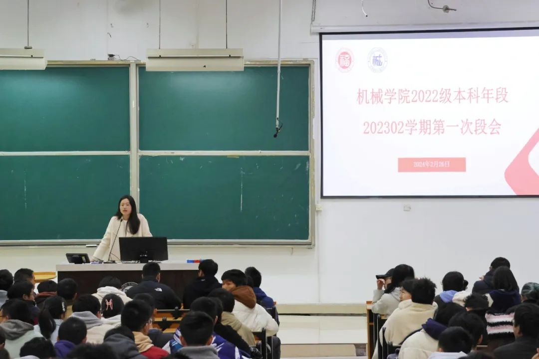 为进一步加强学风建设,规范行为管理,2月26日开学第一天,机械学院2022级本科年段于文3-101教室举行新学期第一次段会。学院党委副书记兼纪委书记孙鋆出席,院团委副书记李辉容、助理辅导员张骥参加会议。会议由辅导员蒋文怡主持。