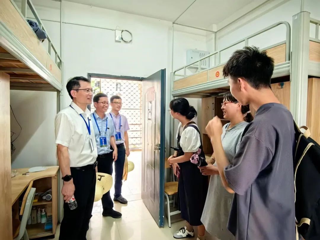 校党委副书记黄身勇莅临视察学院新生报到点,走访宿舍楼关心慰问新生,带来学校的亲切关怀。