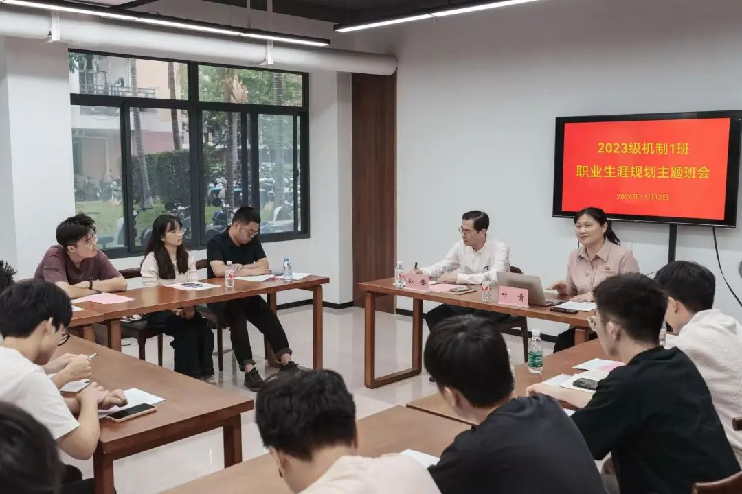 为深入学习贯彻党的二十届三中全会精神和习近平总书记关于就业工作的重要讲话精神,帮助机械学子更好地了解自我、规划未来,11月12日,学院党委书记叶青、党委副书记兼纪委书记孙鋆深入学生社区,于“同观书院”学生共享活动空间与所联系的2023级本科班级学生开展以“职业生涯规划”为主题的班会。学院团委副书记李辉容、2023级本科生辅导员陈妙娜及2023级机制1班全体同学参会。