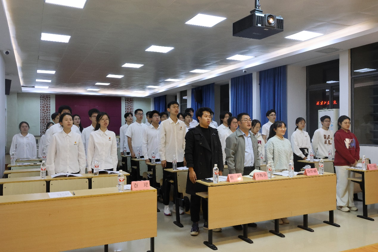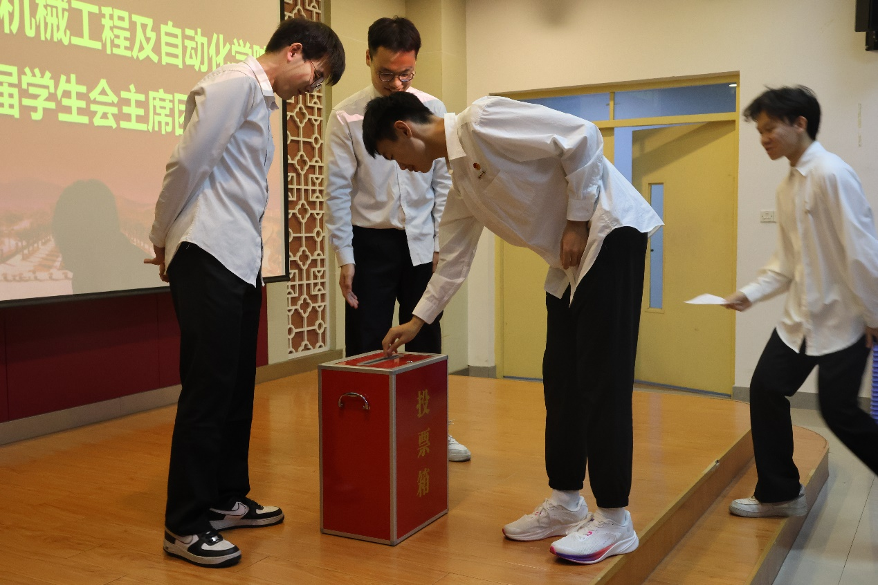 学院2024届学生会及研究生会主席团候选人依次上台发表竞选演讲,并采用无记名、差额投票选举方式,产生了新一届学生会主席团成员:游圳鸿,陈弘斌,吴凡;研究生会主席团成员:施羽涵,江旭晖,黄潇。