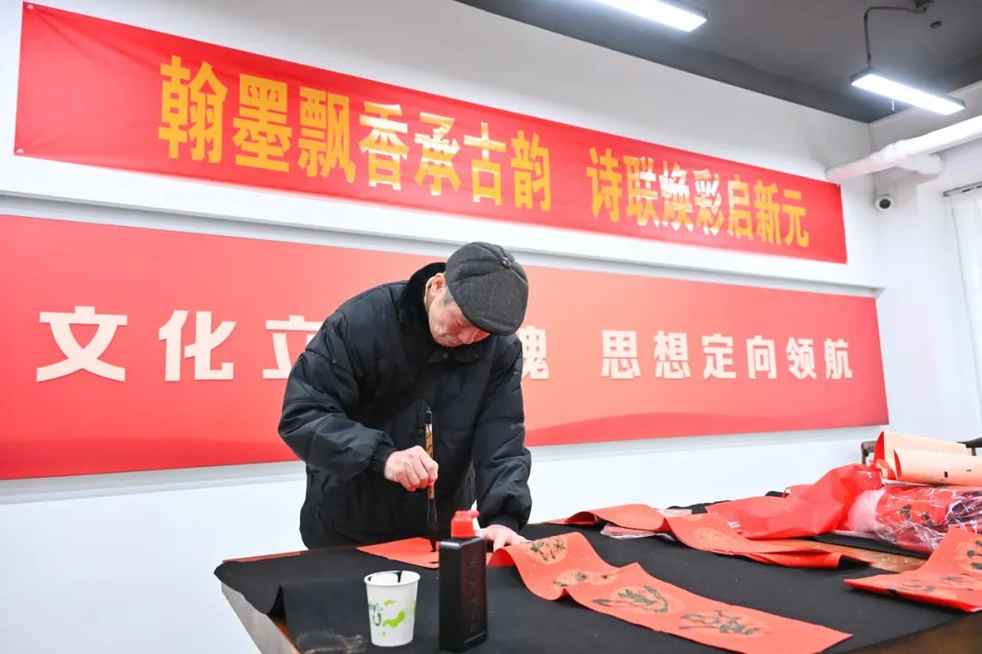 在书写春联环节,老艺术家们技艺娴熟、笔锋游走、落墨生花,一幅幅对仗工整、寓意深远的春联跃然纸上,一笔一划都倾注着对新年的美好祈愿和深情祝福。