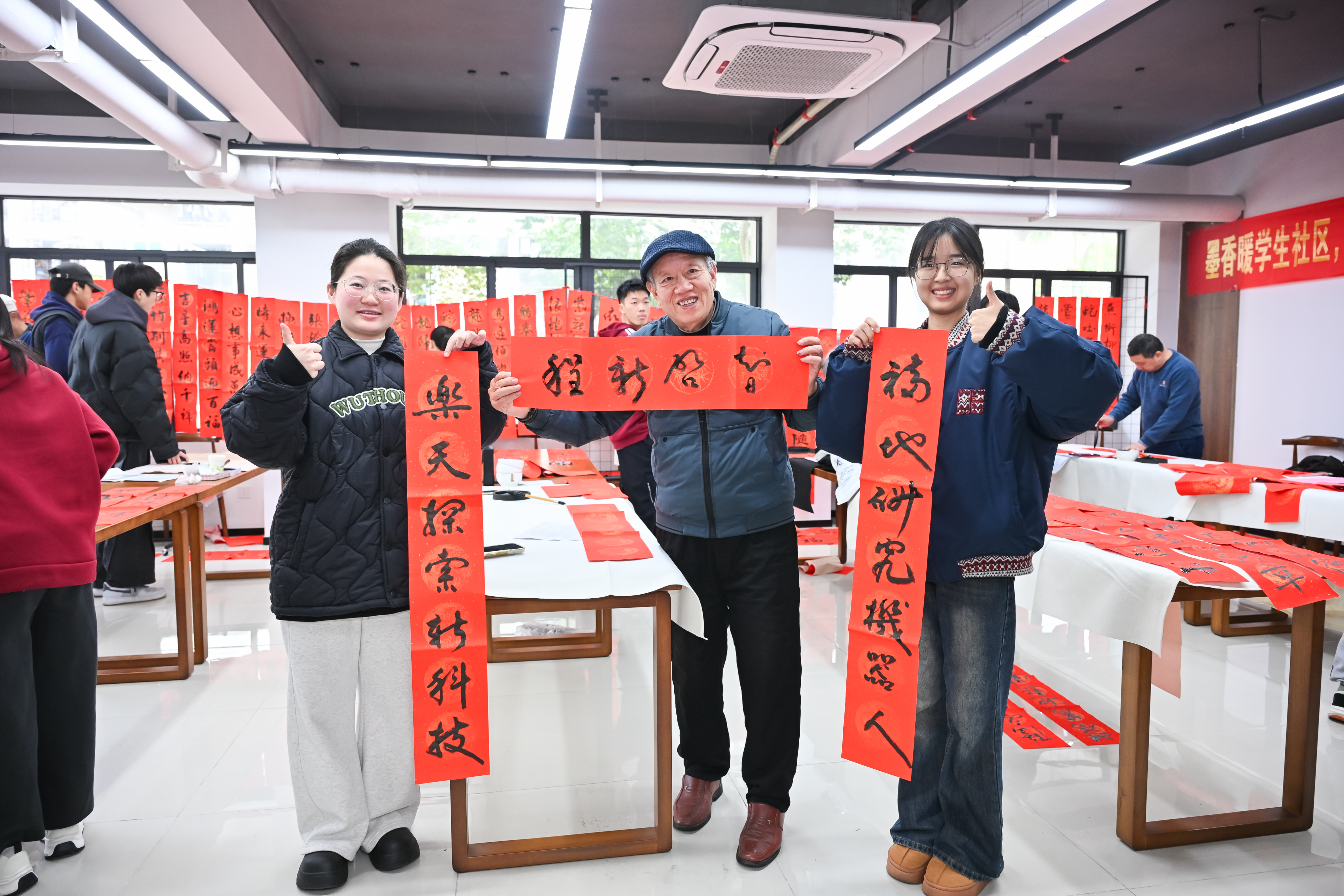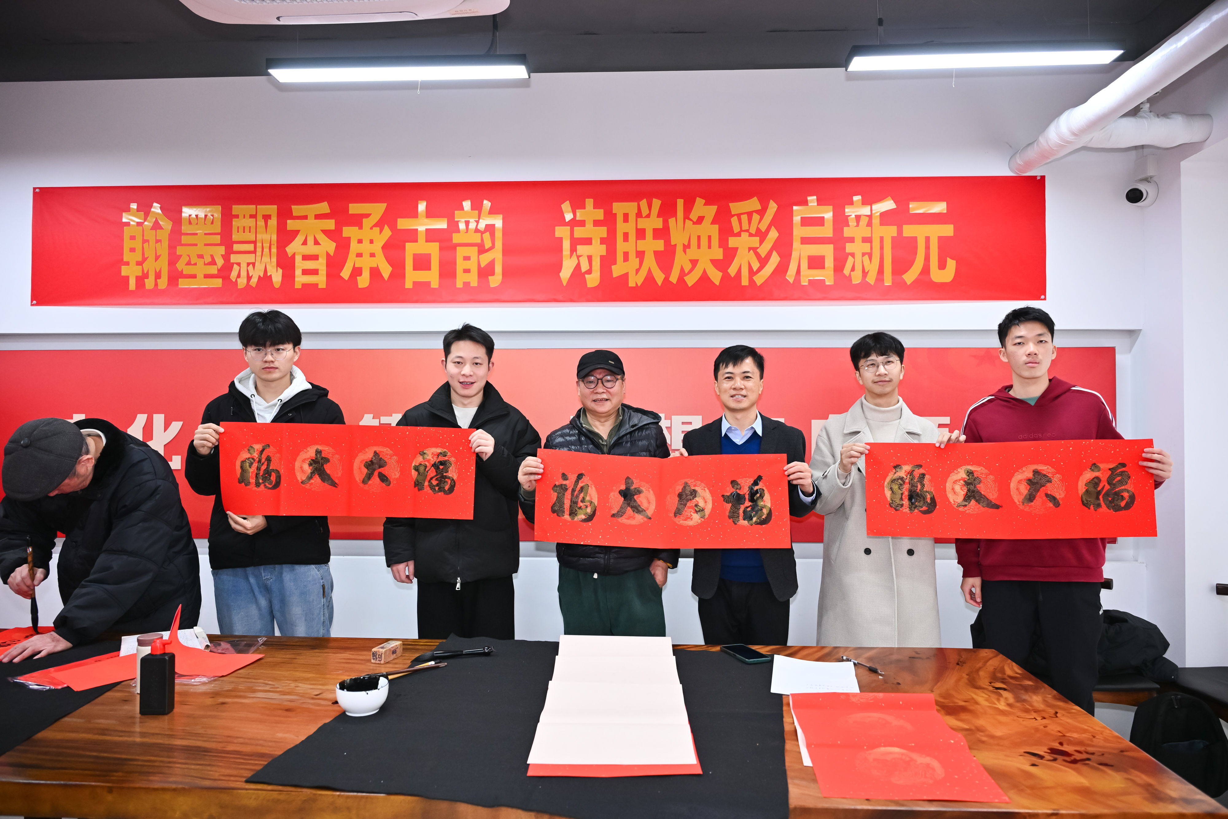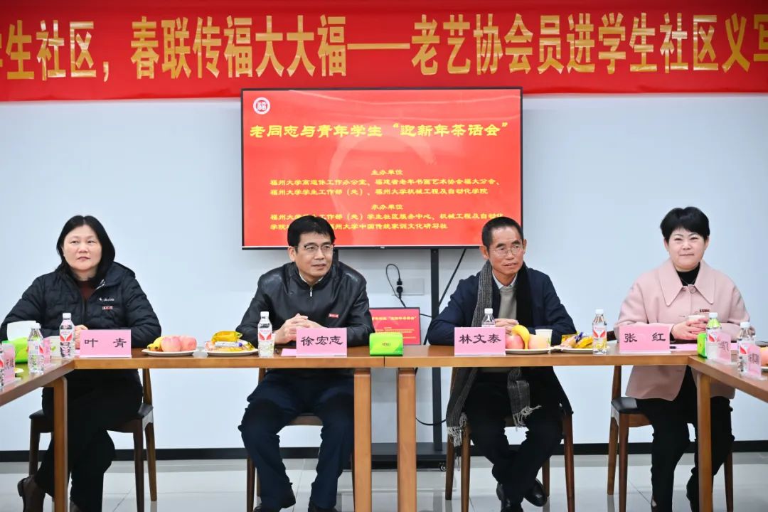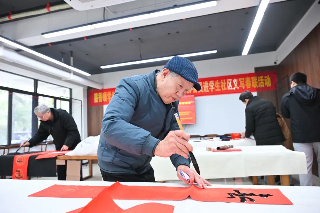 为深入学习贯彻党的二十届三中全会精神,弘扬中华优秀传统文化,12月25日,由校离退休工作办公室、校学生工作部(处)、福建省老年书画艺术协会福大分会、机械学院联合举办的“墨香暖学生社区,春联传福大大福”——老艺协会员进学生社区义写春联活动在“一站式”学生社区“同观书院”学生活动共享空间拉开帷幕。离退办主任徐宏志,学工部部长张红,老艺协常务副会长林文泰、副会长任鸿飞、副会长兼秘书长翁和,离退办副主任刘卫东、罗维铨,机械学院党委书记叶青等出席活动。活动由机械学院党委副书记兼纪委书记孙鋆主持。