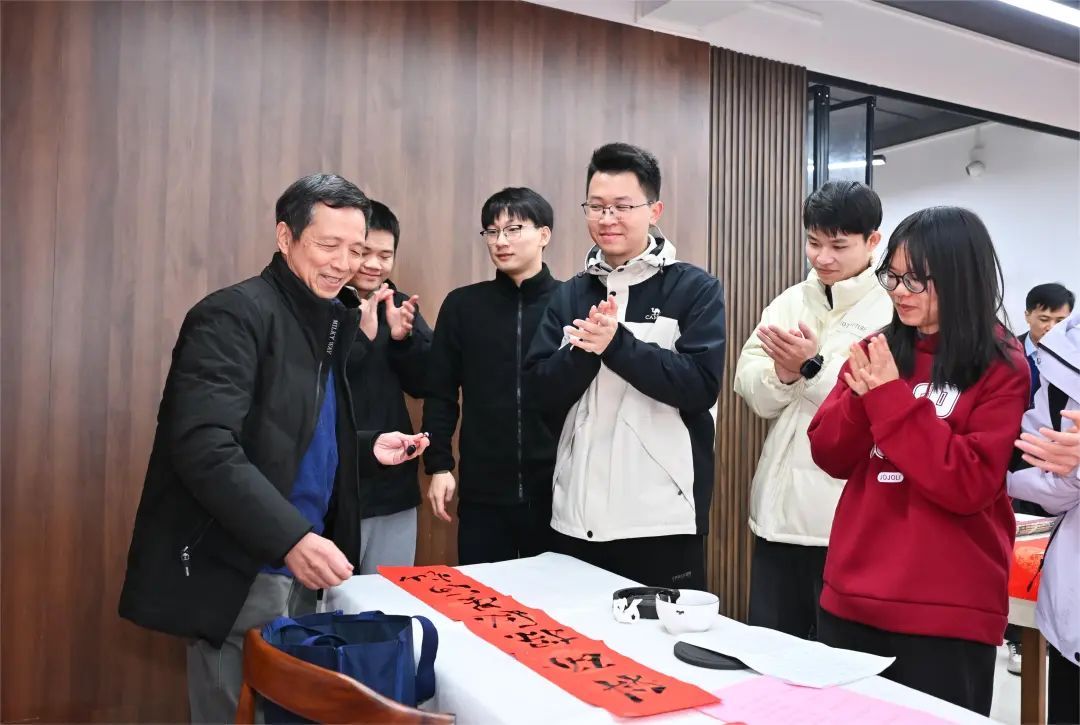青年学生代表分别从获评校十佳研究生党员、K-night赛车队勇夺中国方程式赛车无人车全国冠军和参加创新大赛获奖等方面,汇报了党建引领、科研学习、学科竞赛取得的成绩,并向老艺术家们致以崇高敬意。任鸿飞副会长等老艺术家们表示,学校、学院的飞速发展和优异成绩令人欣喜,他们希望书法艺术能够进一步传递中华民族传统文化魅力,为广大师生带来新年美好祝愿。学院党委叶青书记代表学院向老艺术家们致以诚挚感谢,她表示学院将进一步依托“同观书院”丰富学生社区文化生活,传承优秀家风家训,推动“三全育人”取得更加丰硕成果。