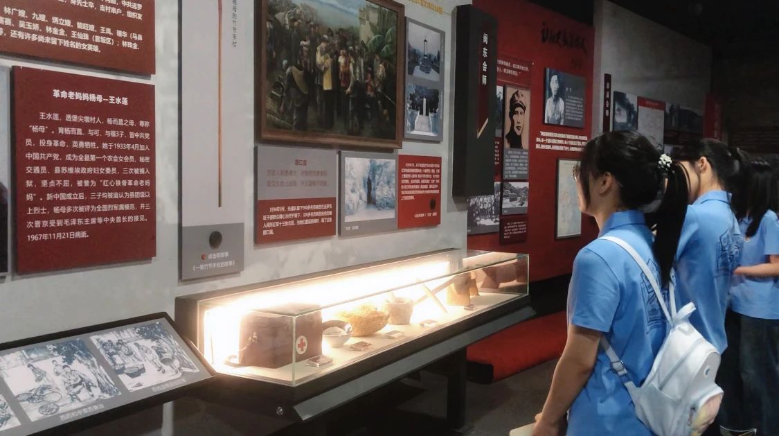 队员们来到了中国工农红军北上抗日先遣队陈列馆,目光被墙上的历史资料与展柜里的珍贵文物吸引。他们驻足于“革命老妈妈”杨母王水莲事迹前,凝视着先辈投身革命、英勇牺牲的过往;又在描绘战斗场景的画作前停留,仿佛能看见当年的烽火硝烟。展柜中,陈旧的医疗箱、布满岁月痕迹的物件,无声诉说着往昔的艰难与坚守。队员们认真聆听历史的回响,在一件件展品、一段段文字里,触摸先辈们的热血初心,让红色精神的传承,在参观的凝视与思索中,悄然扎根、升温。