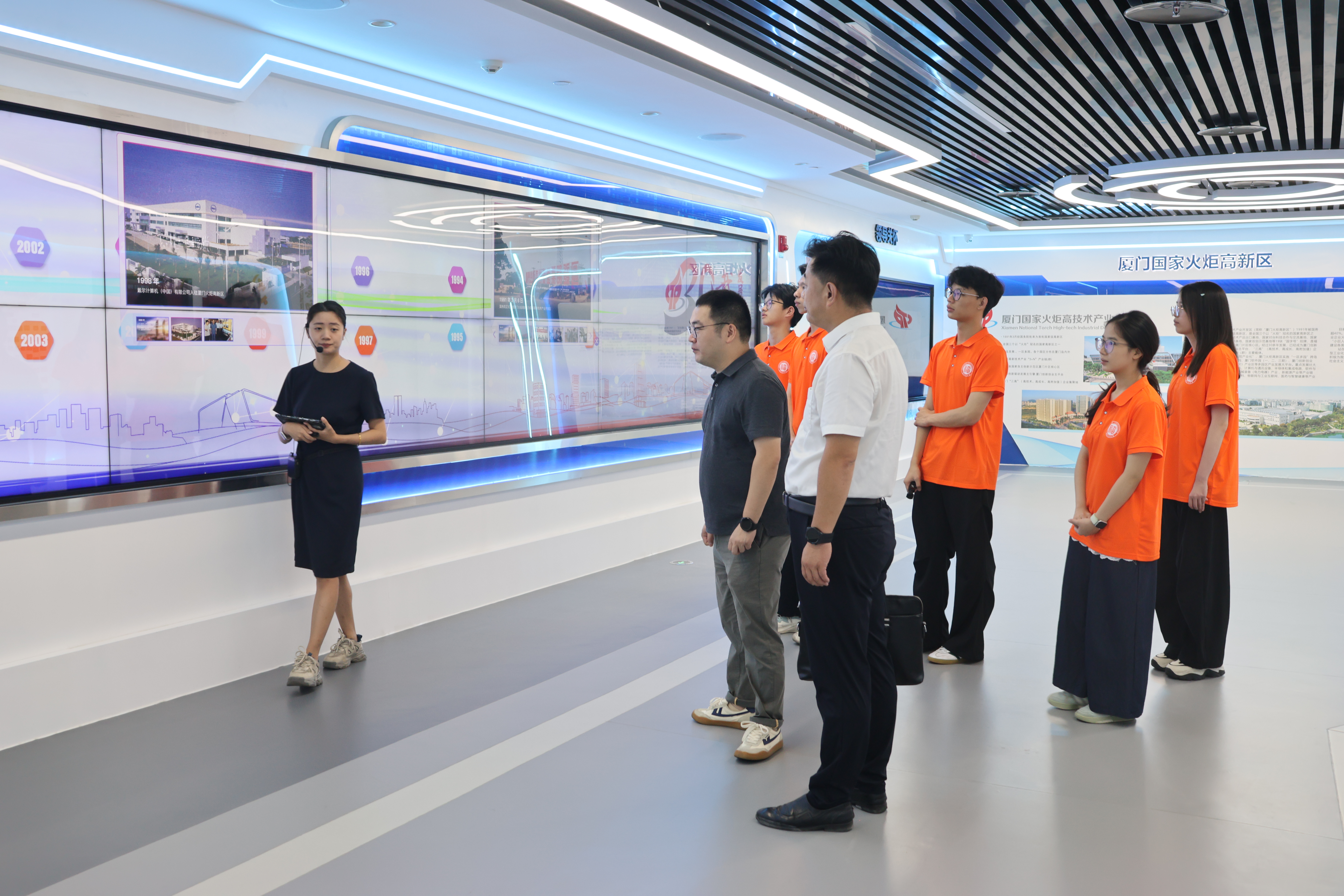 随后,实践队与管委会相关负责人开展座谈交流。管委会负责人对实践队队员的到来表示欢迎,详细向实践队队员介绍厦门火炬高新区对人才引进以及推动产教研结合的相关政策,解答了同学们所最关心的就业与生活问题。同时管委会也向实践队详细介绍高新区主办的“炬火种·燃新薪”高校专业新星挑战大赛,希望同学们能踊跃参与相关活动,不断赋能企业发展。
