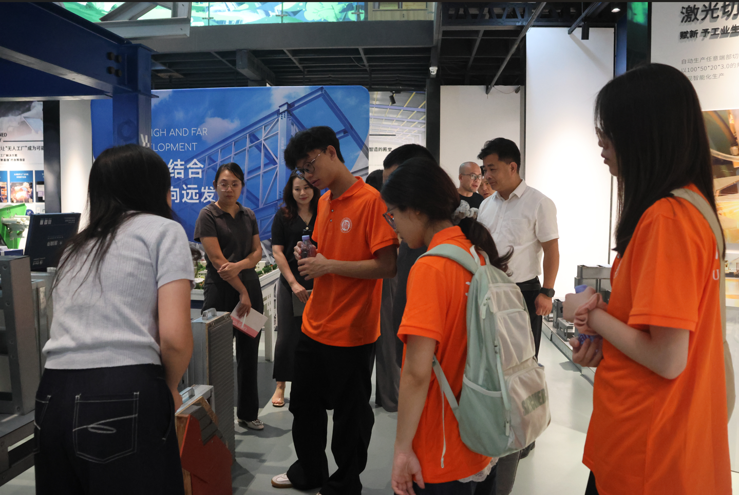 实践队来到大禾众邦(厦门)智能科技股份有限公司,在公司工作人员的热情引导下,参观智能化展厅。队员们驻足在专利技术展示区,认真聆听工作人员讲解公司自主研发的无极剪切换型技术,让队员们深刻感受到创新在推动行业发展中的关键作用。实践队来到样品房区域,实地观察了钢结构装配式建筑。样板房不仅展示了先进的建筑设计理念,更体现了大禾众邦在建筑工业化研究方面的成果。队员们走进样板房,亲身感受其空间布局、内部装修以及建筑材料的实际应用效果,对钢结构建筑在环保、施工速度等方面的优势有了直观认识。在智能产品生产基地,队员们近距离参观了现代化的生产车间,向工作人员询问生产工艺和设备运行原理等问题。