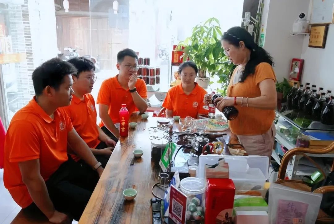 米酒店负责人巫阿姨热情向实践队成员介绍了店铺现有的米酒种类,并邀请实践队员品尝不同口味的米酒。她指出客家米酒富含营养,不仅能助力肠胃消化、促进血液循环,还能够作为菜肴烹饪的佐料,具有调味增香的效果。