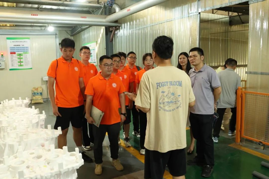 随后,实践队来到福建省神悦铸造股份有限公司参观交流。作为国家专精特新"小巨人"企业,企业负责人重点介绍了企业在消失模铸造技术领域的创新突破。神悦铸造通过不断创新消失模工艺,实现了复杂结构零部件的一体化成型,解决了传统铸造中精度低、成本高的行业难题,其产品广泛应用于新能源汽车、高端装备制造等领域。实践队员认真聆听技术讲解,对企业的创新研发能力表示赞叹。实践队深入生产一线,实地考察消失模铸造的全工艺流程。在企业负责人的带领下,队员们依次参观了发泡成型、模型涂装、埋砂浇铸等核心工序。通过实地观摩,队员们对从原材料到成品的完整生产流程有了直观认识,切身感受到技术创新对提升产品质量的关键作用。