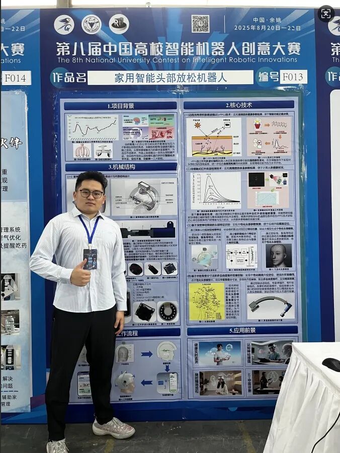 机械学院浮舟湿地战队首届“竞技机器人”校赛二等奖,参加2025全国机械工程创新创意大赛数字孪生项目。