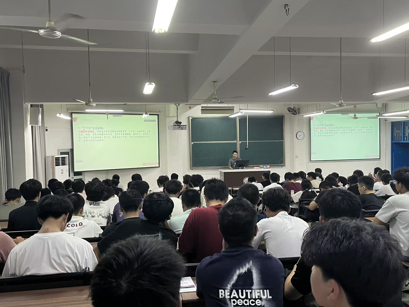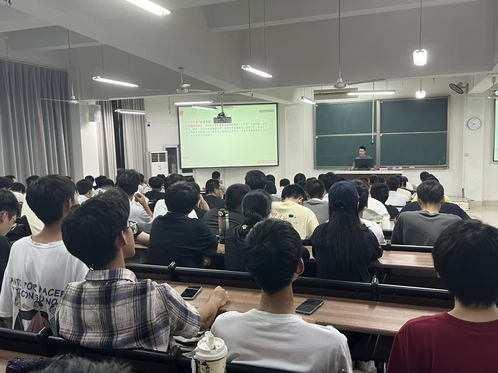 分享会上,江旭晖及其实践队成员通过系列照片和视频,生动讲述了实践队开展暑期社会实践的初心、社会实践整体安排和对于个人的成长,详细分享了关于社会实践的一些理解和感悟,同时为刚刚踏入大学校园的新生提供了宝贵经验。除此之外,作为从本校升学的研究生,江旭晖还向大一新生传授大学学习生活的一些经验与建议,现场新生专注投入,全程认真倾听,对分享内容表现出高度的关注。