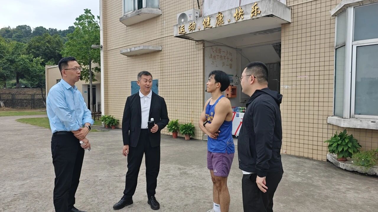 1989级院友张彦君学长、2002级院友赵绍融学长一行,在学院党委副书记谢武老师、学院团委副书记李辉容老师的陪同下,专程前往学校田径场,亲切看望正在紧张备战的运动员们,为他们加油鼓劲。