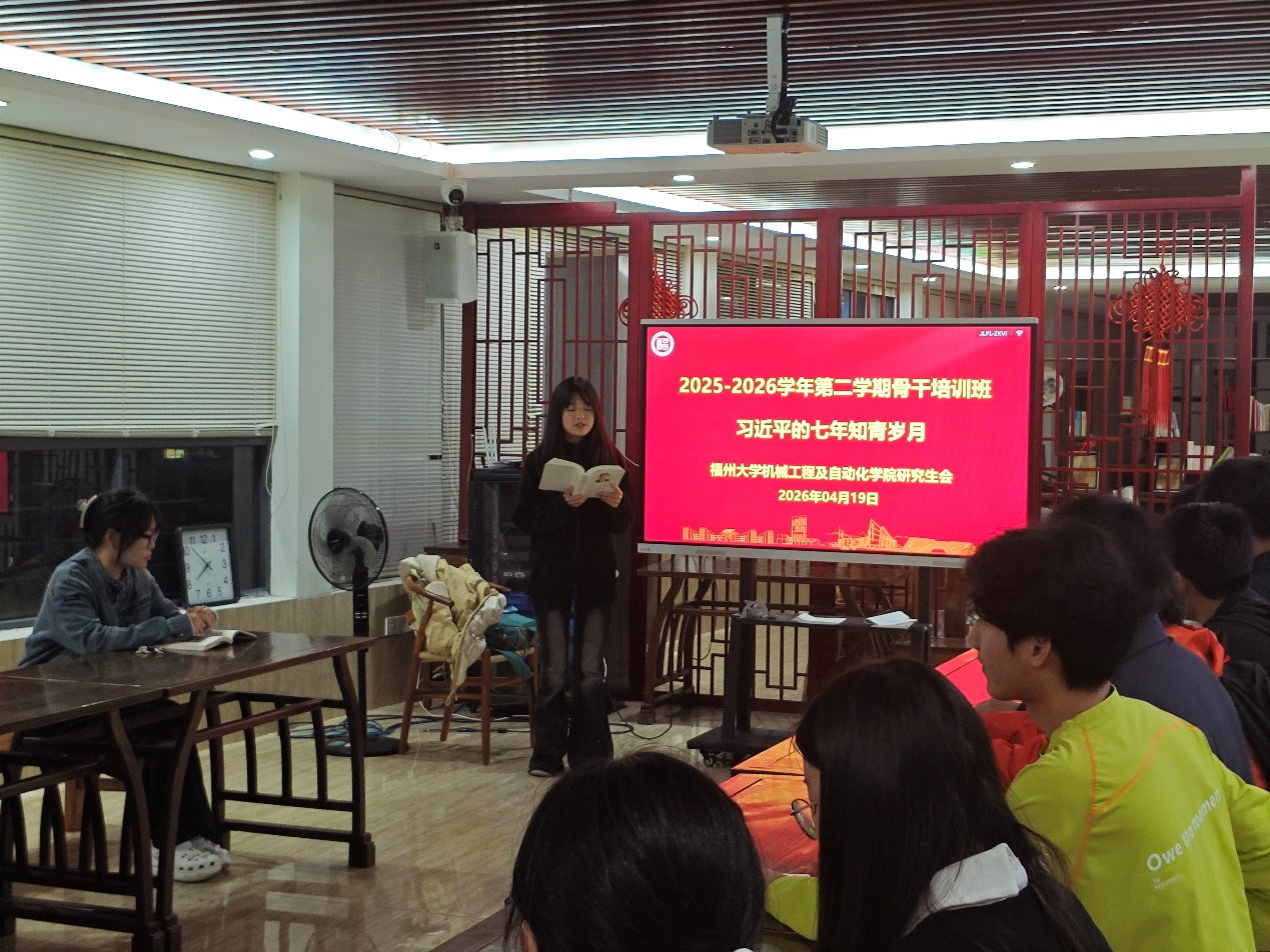 为强化学生骨干思想引领,锤炼责任担当,4月19日,机械学院在机械楼 5 楼同观书院举办《习近平的七年知青岁月》专题学生骨干培训班,由研会成员郑华主讲,学院全体学生骨干参与学习。
