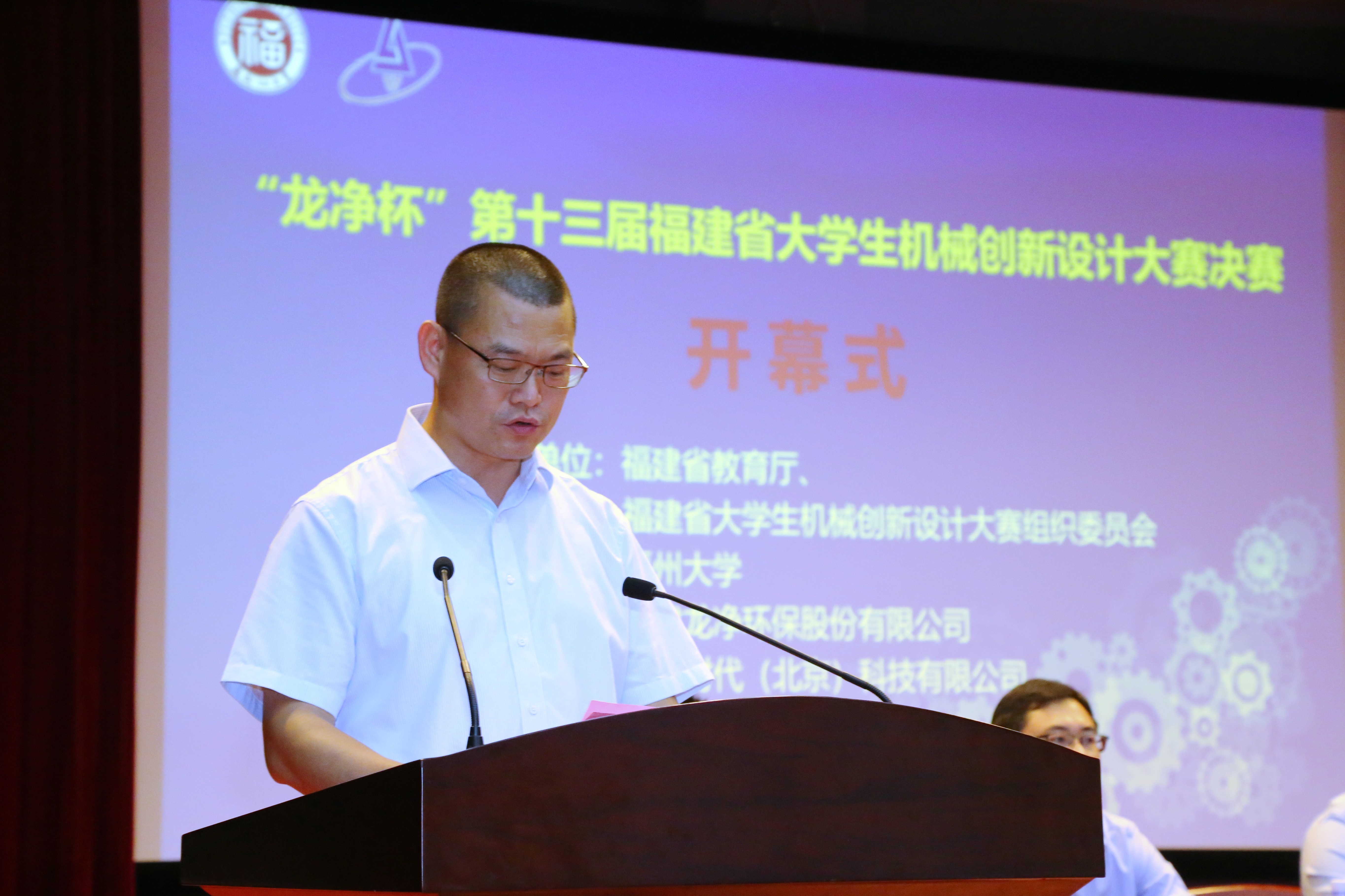 党委副书记林生研究员、福建龙净环保股份有限公司总经理助理林春源先生、机器时代(北京)科技有限公司销售经理刘红艳女士、教务处副处长张友坤老师、校团委副书记林航老师、机械学院党委书记陈为旭研究员、院长钟舜聪研究员、林文麟副书记等领导嘉宾出席开幕式。会议由福建省大学生机械创新设计大赛组委会秘书长刘晓敏教授主持。