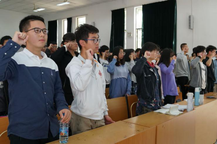 接下来,滕培秀老师和学生代表带领全体同学一起进行学习成长计划承诺书的宣誓仪式,伴随着这嘹亮而又奋进的口号声,部署已久的学习成长计划正式拉开序幕。接下来的一个月中,2018级的同学们将把工作重心转移到学习,共组成66组学习小组,着重开展“吃鸡学习法、学霸讲坛、模拟考试、寻找学习榜样”等各项活动来提高同学们的学习积极性。借此活动,希望同学们的学习之路不再枯燥无味,而是能够在成长的道路上与志同道合的益友相遇,与学习小伙伴互帮互助,相互取经取长补短,互相鼓励共同成长。