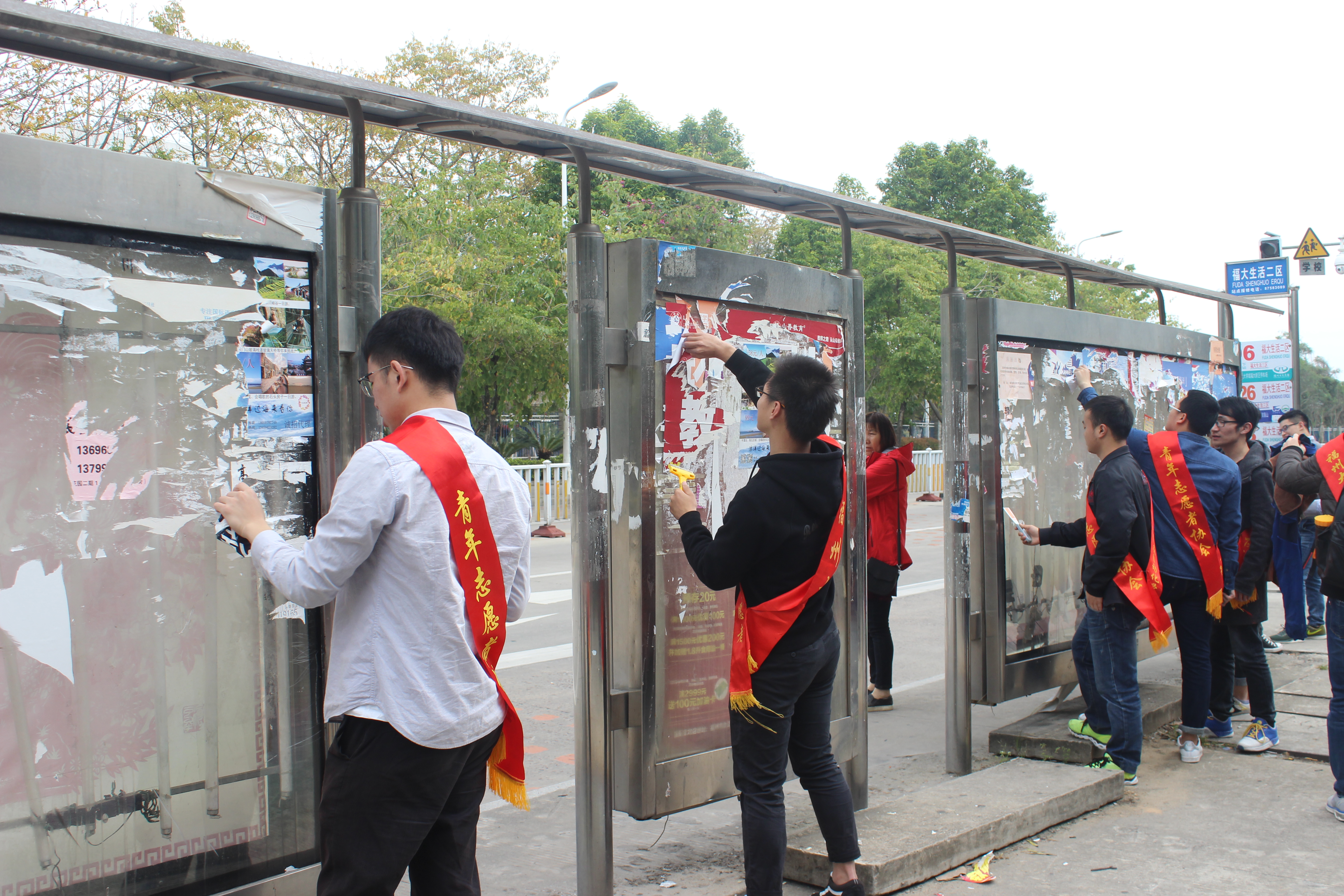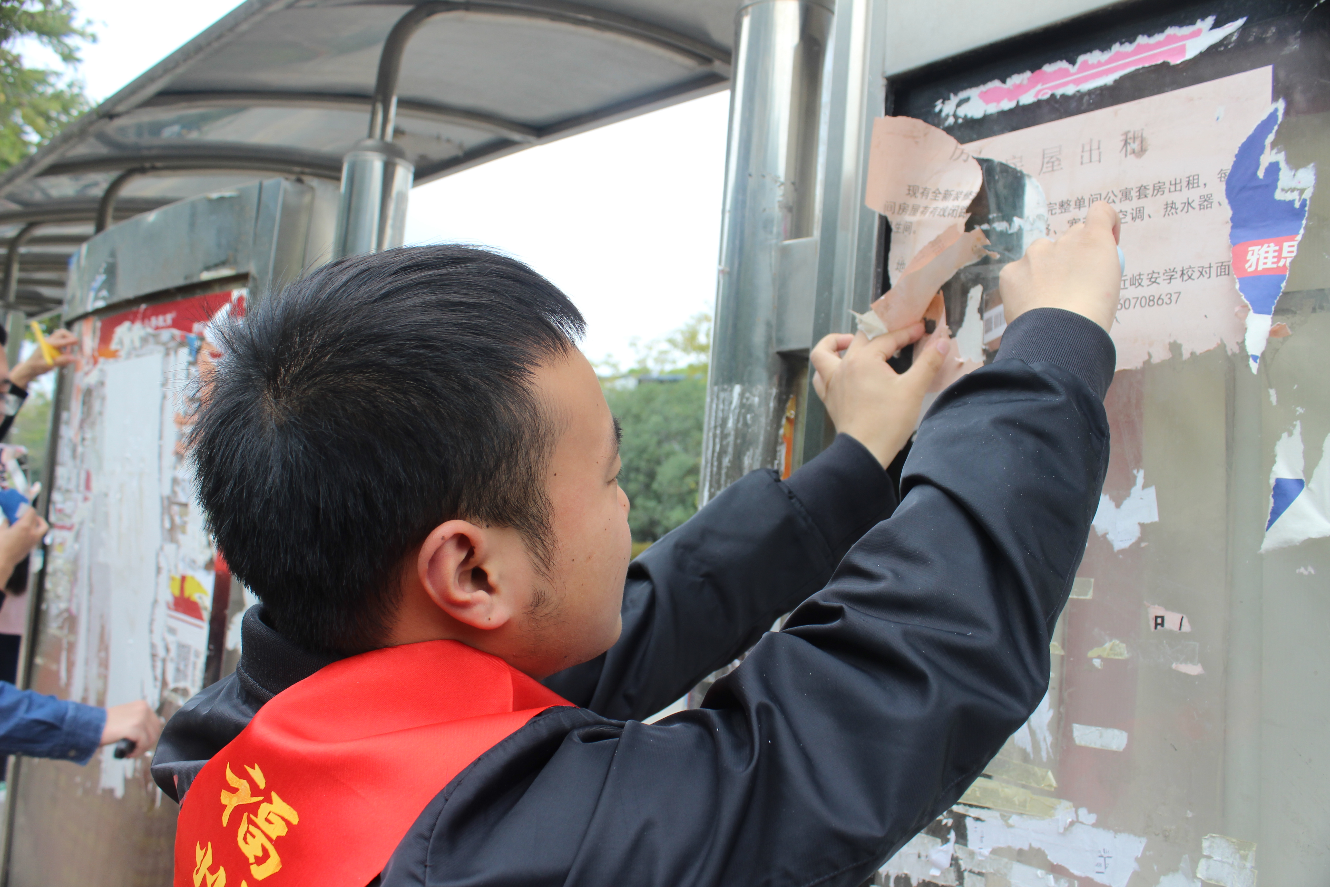 2016级本科生志愿者开展了清理公交站牌小广告志愿服务活动。