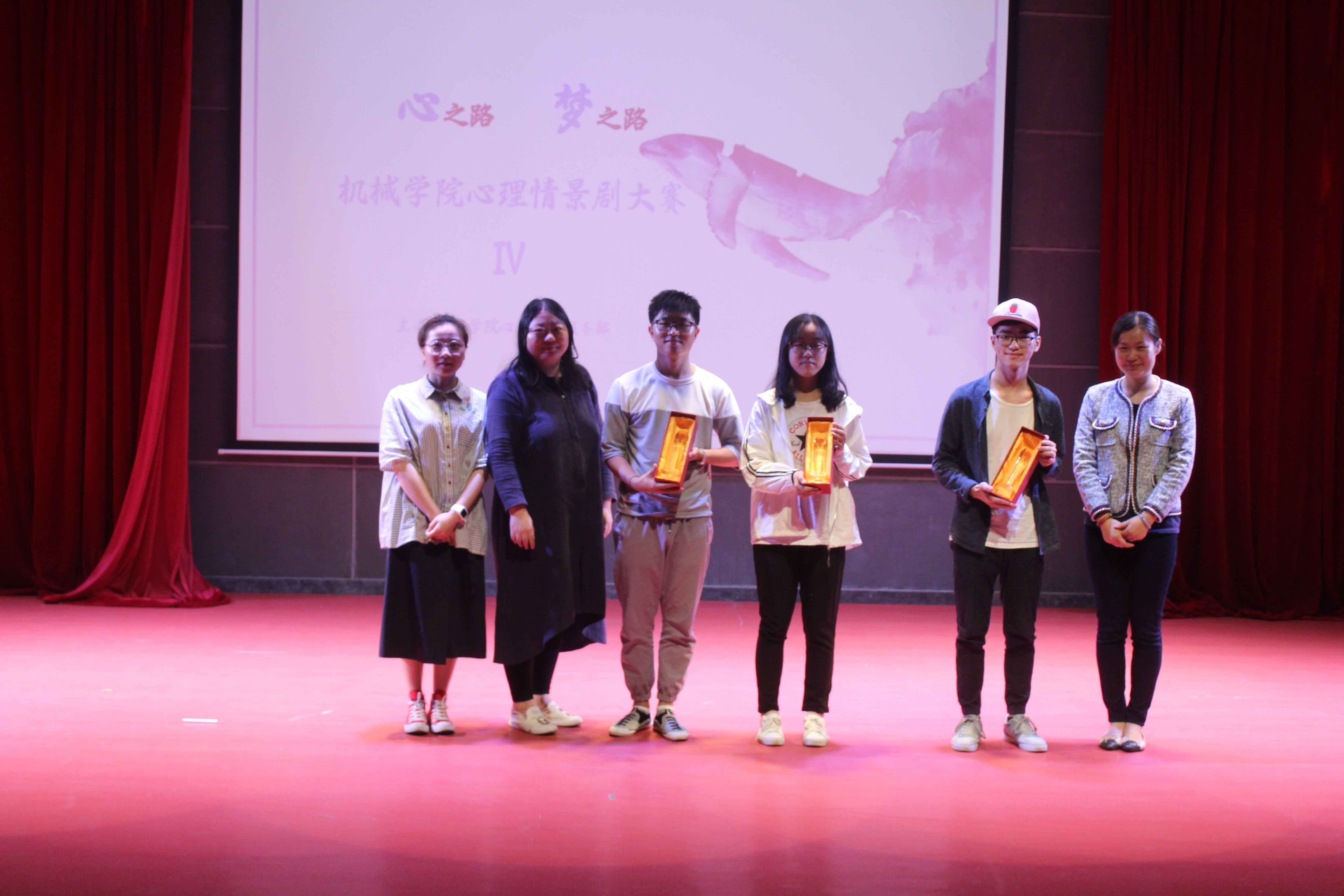 主办的第四届心理情景剧大赛于图书馆明德厅举办。到场的嘉宾有国家二级心理咨询师许琳玲老师、汪静筠老师,院团委书记刘旭莹老师和学院各年级辅导员。
